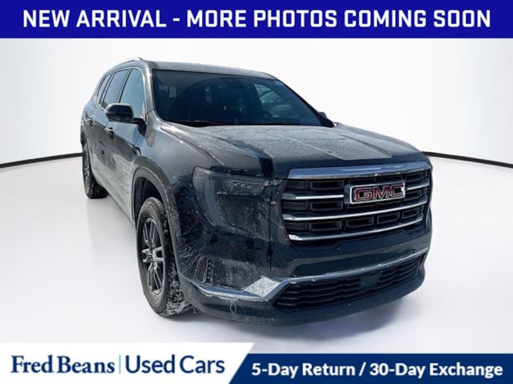 2025 GMC Acadia Elevation 2.5L DOHC 8-Speed Automatic FWD 4D Sport Utility Ebony Twilight Metallic Triton Certified Vehicle, 7 Year / 100k Powertrain Warranty, 12 Month / 12,000 Mile Comprehensive Warranty, 5 Day Return / 30 Day Exchange, Auto Reward Program, FWD, After Dark Cloth, 2-Way Driver Power Lumbar Seat Adjuster, 4-Way Manual Front Passenger Seat Adjuster, 8-Passenger Seating (2-3-3 Seating Configuration), 8-Way Power Driver Seat Adjuster, AM/FM radio: SiriusXM with 360L, Apple CarPlay/Android Auto, Auto High-beam Headlights, Auto-dimming Rear-View mirror, Automatic temperature control, Bose Premium 12-Speaker System with Sub-Woofer, Exterior Parking Camera Rear, Front dual zone A/C, Fully automatic headlights, Heated door mirrors, Heated Driver and Front Passenger Seats, Heated front seats, Heated steering wheel, Navigation System, Power driver seat, Power Liftgate, Preferred Equipment Group 4SC, Radio: 15" Diagonal Premium GMC Infotainment System, Remote keyless entry, SiriusXM with 360L, Steering wheel mounted audio controls.