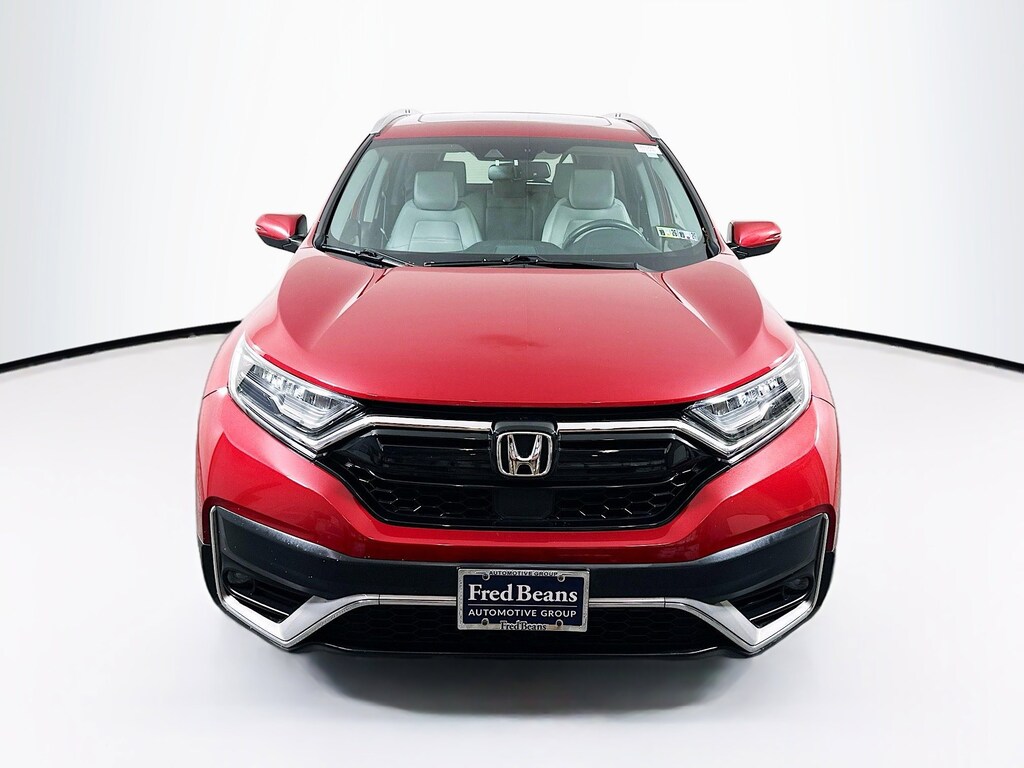 2021 Honda CR-V Touring with a 1.5L 4-cylinder engine, CVT transmission, and all-wheel drive, finished in Radiant Red Metallic. This local trade has great service history and is Triton Certified, backed by a 7-year/100,000-mile powertrain warranty and a 12-month/12,000-mile comprehensive warranty. Added benefits include a free first oil change, 5-day return, 30-day exchange, and our exclusive Auto Rewards Program.