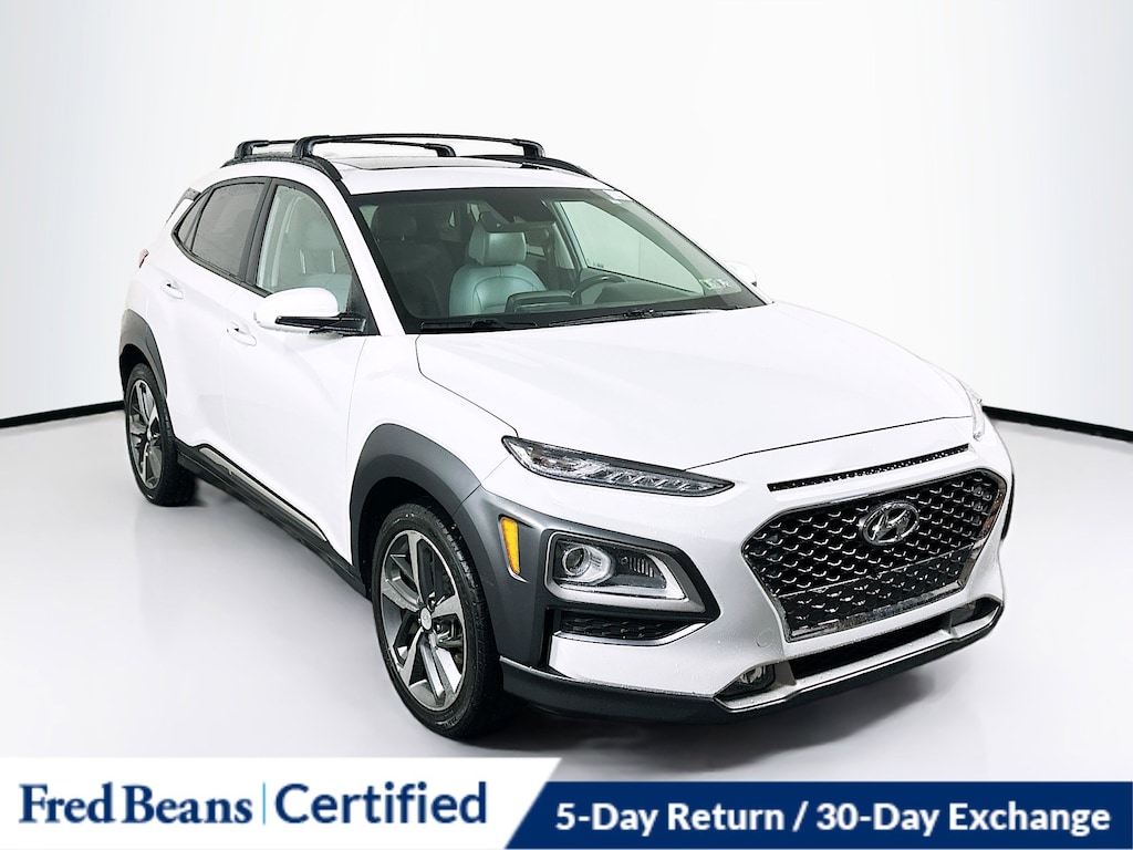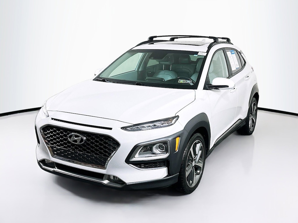 The Kona Limited delivers comfort and technology with leather-trimmed heated front seats, a power driver seat, Apple CarPlay and Android Auto, a premium AM/FM/MP3/HD Radio/SiriusXM audio system with 8 speakers, and a power moonroof. Safety and driver-assist features include LED headlamps, blind spot monitoring with rear traffic alert, lane assist, exterior parking camera, and push-button start. Additional conveniences include fully automatic headlights, dual-zone automatic climate control, telescoping and tilt steering wheel, and 18-inch alloy wheels.