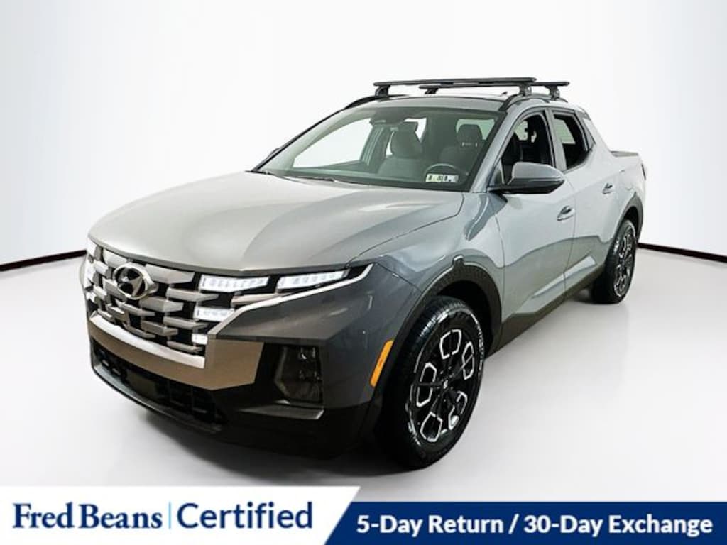 2023 Hyundai Santa Cruz SEL Premium 2.5L I4 Shiftronic AWD 4D Crew Cab Hampton Gray Local Trade, Factory Certified Vehicle, Free First Oil Change, 5 Day Return / 30 Day Exchange, Auto Reward Program, 5 Year / 60,000 miles comprehensive OISD, 10 Year / 100,000 miles powertrain OISD, ABS brakes, Bed Mat, Cargo Package, Emergency communication system: Blue Link Connected Car Service (3-year complimentary subscription), Envelop Cargo Net, Exterior Parking Camera Rear, First Aid Kit, Heated Front Bucket Seats, Navigation System, Option Group 01, Power driver seat, Power moonroof, Power steering, Power windows, Remote keyless entry, Roof Rack Cross Rails, Steering wheel mounted audio controls, Tow & Go Package, Tow Hitch, Turn signal indicator mirrors.