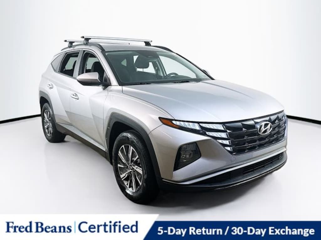 2024 Hyundai Tucson Hybrid Blue I4 6-Speed Automatic AWD 4D Sport Utility Shimmering Silver Factory Certified Vehicle, Free First Oil Change, 5 Day Return / 30 Day Exchange, Auto Reward Program, 5 Year / 60,000 miles comprehensive OISD, 10 Year / 100,000 miles powertrain OISD, I4, ABS brakes, Apple CarPlay & Android Auto, Emergency communication system, Exterior Parking Camera Rear, Heated Front Bucket Seats, Navigation System, Option Group 01, Power driver seat, Power Liftgate, Power steering, Power windows, Remote keyless entry, Roof Rack Cross Rails, Steering wheel mounted audio controls.