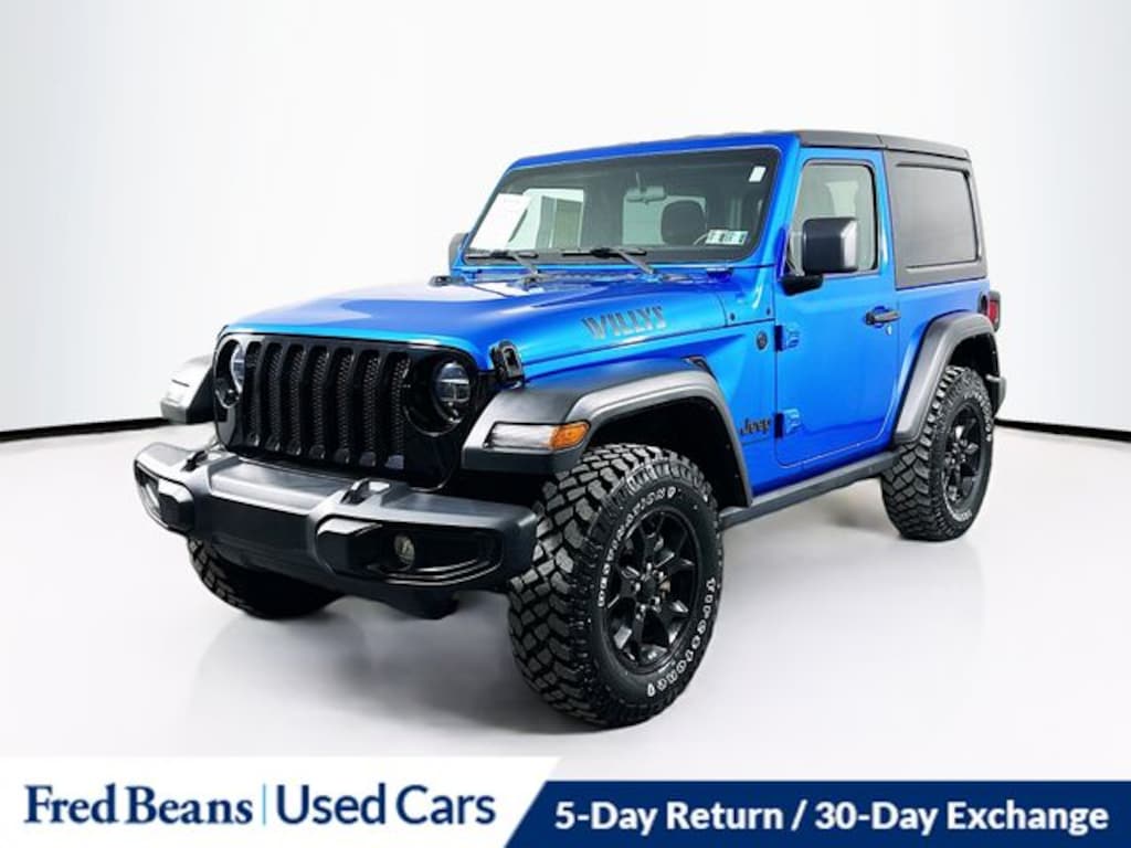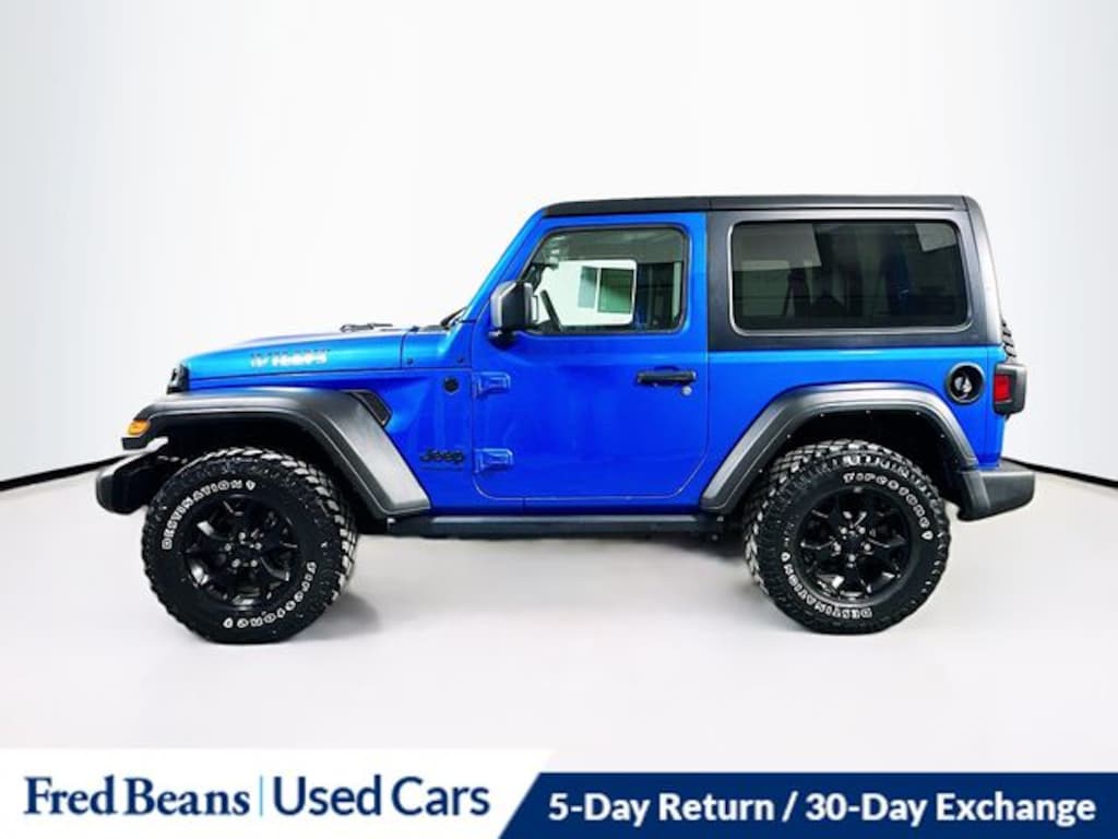 2022 Jeep Wrangler Willys 3.6L V6 24V VVT 6-Speed Manual 4WD 2D Sport Utility Hydro Blue Pearl Coat Great Service History, 4-Wheel Drive Swing Gate Decal, 97 MPH Vehicle Max Speed Calibration, Air Conditioning, Anti-Spin Differential Rear Axle, Automatic Headlamps, Black Grille, Black Trail Rated Badge, Bridgestone Brand Tires, Deep Tint Sunscreen Windows, Front 1-Touch Down Power Windows, Global Telematics Box Module (TBM), GPS Antenna Input, Integrated Voice Command w/Bluetooth, Leather Wrapped Steering Wheel, LED Headlamp & Fog Lamp Group, Matte Black Jeep Badge, Mold In Color Bumper w/Gloss Black, MOPAR All-Weather Floor Mats, Power Heated Mirrors, Quick Order Package 23W Willys, Remote Keyless Entry, Security Alarm, SiriusXM Guardian-Included Trial (B), Speed Sensitive Power Locks, Sun Visors w/Illuminated Vanity Mirrors, USB Host Flip, Wheels: 17" x 7.5" Moab Black Aluminum, Willys, Willys Hood Decal.