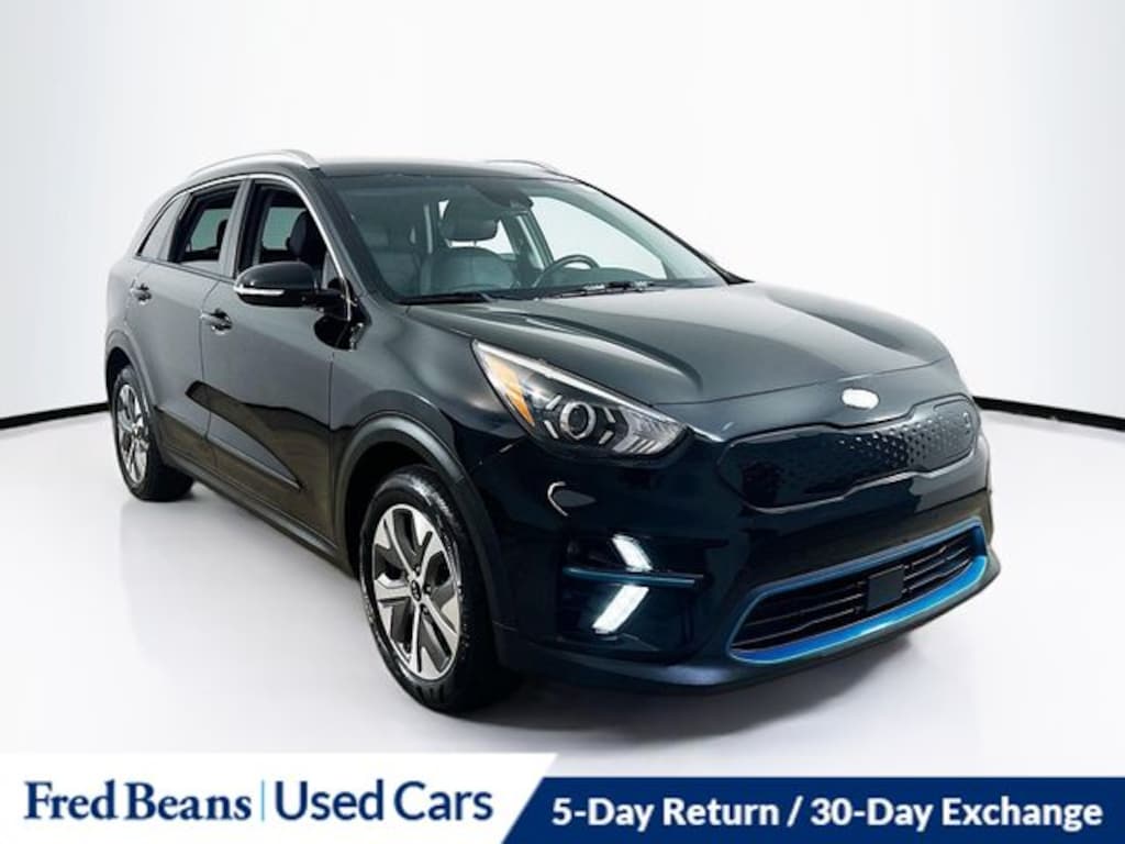 2021 Kia Niro EV EX Electric Motor 1-Speed Automatic FWD 4D Sport Utility Aurora Black Pearl Kia Certified Pre-Owned Certified, 17" Alloy Wheels, 4-Wheel Disc Brakes, 6 Speakers, 8.21 Axle Ratio, ABS brakes, Air Conditioning, Alloy wheels, AM/FM radio: SiriusXM, Auto High-beam Headlights, Automatic temperature control, Battery Heater, Bodyside moldings, Brake assist, Bumpers: body-color, Carpeted Floor Mats, Cloth & Artificial Leather Seat Trim, Cold Weather Package, Delay-off headlights, Driver door bin, Driver vanity mirror, Dual front impact airbags, Dual front side impact airbags, Electronic Stability Control, Emergency communication system: UVO link 911 Connect, Exterior Parking Camera Rear, Four wheel independent suspension, Front anti-roll bar, Front Bucket Seats, Front Center Armrest, Front fog lights, Front reading lights, Fully automatic headlights, Heat Pump, Heated door mirrors, Heated Front Bucket Seats, Heated front seats, Heated Steering Wheel, Illuminated entry, Knee airbag, Low tire pressure warning, Occupant sensing airbag, Outside temperature display, Overhead airbag, Overhead console, Panic alarm, Passenger door bin, Passenger vanity mirror, Power door mirrors, Power driver seat, Power steering, Power windows, Radio: AM/FM/SiriusXM, Rear anti-roll bar, Rear seat center armrest, Rear window defroster, Rear window wiper, Remote keyless entry, Roof rack: rails only, Security system, Speed control, Speed-sensing steering, Split folding rear seat, Spoiler, Steering wheel mounted audio controls, Telescoping steering wheel, Tilt steering wheel, Traction control, Trip computer, Turn signal indicator mirrors, Variably intermittent wipers.