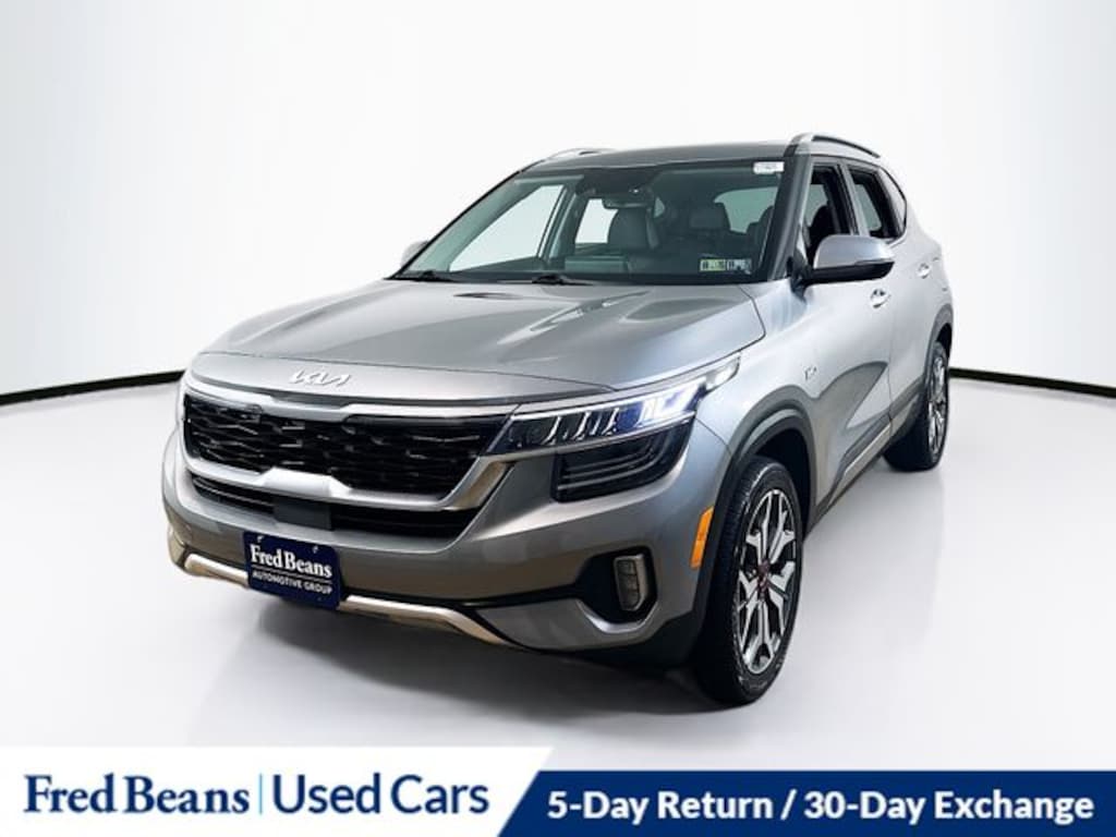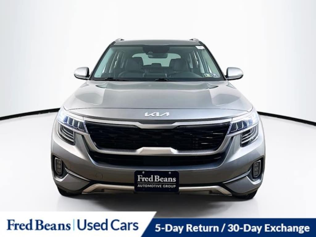 2023 Kia Seltos SX I4 7-Speed Automatic AWD 4D Sport Utility Steel Gray Kia Certified Pre-Owned Certified, 4-Wheel Disc Brakes, 4.643 Axle Ratio, 8 Speakers, ABS brakes, Air Conditioning, Alloy wheels, AM/FM radio: SiriusXM, Apple CarPlay & Android Auto, Auto High-beam Headlights, Auto-dimming Rear-View mirror, Automatic temperature control, Brake assist, Bumpers: body-color, Carpet Floor Mats, Delay-off headlights, Driver door bin, Driver vanity mirror, Dual front impact airbags, Dual front side impact airbags, Electronic Stability Control, Emergency communication system: 911 Connect, Exterior Parking Camera Rear, Four wheel independent suspension, Front anti-roll bar, Front Bucket Seats, Front Center Armrest, Front fog lights, Front reading lights, Fully automatic headlights, Heated door mirrors, Heated Front Bucket Seats, Heated front seats, Illuminated entry, Leather Shift Knob, Low tire pressure warning, Navigation System, Occupant sensing airbag, Outside temperature display, Overhead airbag, Overhead console, Panic alarm, Passenger door bin, Passenger vanity mirror, Power door mirrors, Power driver seat, Power steering, Power windows, Radio: AM/FM/MP3 Display Audio w/Navigation, Rear seat center armrest, Rear window defroster, Rear window wiper, Remote keyless entry, Security system, Sofino Premium Leatherette Seat Trim, Speed control, Speed-sensing steering, Split folding rear seat, Spoiler, Sport steering wheel, Steering wheel mounted audio controls, Sunroof, SX Sunroof Package, Tachometer, Telescoping steering wheel, Tilt steering wheel, Traction control, Trip computer, Turn signal indicator mirrors, Variably intermittent wipers, Wheels: 18" Alloy w/Machined Finish.