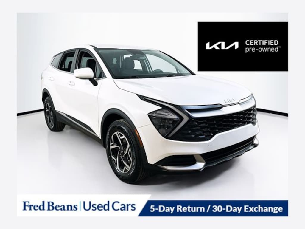 2023 Kia Sportage LX I4 8-Speed Automatic AWD 4D Sport Utility Snow White Pearl Kia Certified Pre-Owned Certified, AWD, 17" Alloy Wheels, 4-Wheel Disc Brakes, 6 Speakers, ABS brakes, Air Conditioning, Alloy wheels, AM/FM radio, Auto High-beam Headlights, Axle Ratio: 3.648, Brake assist, Bumpers: body-color, Cargo Net Hybrid w/o Audio, Cargo Tray, Carpeted Floor Mats, Cloth Seat Trim, Delay-off headlights, Driver door bin, Driver vanity mirror, Dual front impact airbags, Dual front side impact airbags, Electronic Stability Control, Four wheel independent suspension, Front anti-roll bar, Front Bucket Seats, Front Center Armrest, Fully automatic headlights, Heated door mirrors, Heated front seats, Illuminated entry, Low tire pressure warning, Mud Guards, Occupant sensing airbag, Outside temperature display, Overhead airbag, Overhead console, Panic alarm, Passenger door bin, Passenger vanity mirror, Power door mirrors, Power steering, Power windows, Radio: AM/FM/HD Audio System, Rear anti-roll bar, Rear seat center armrest, Rear window defroster, Rear window wiper, Remote keyless entry, Security system, Speed control, Speed-sensing steering, Split folding rear seat, Spoiler, Steering wheel mounted audio controls, Tachometer, Telescoping steering wheel, Tilt steering wheel, Traction control, Trip computer, Variably intermittent wipers, Wheel Locks, AWD.