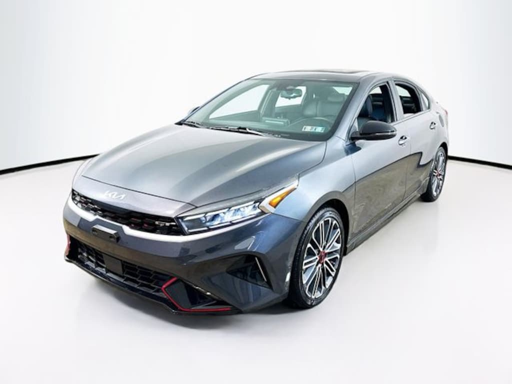 2024 Kia Forte GT 1.6L I4 Turbo 7-Speed Automatic FWD 4D Sedan Gravity Gray Kia Certified Pre-Owned Certified, 10-Way Power Driver's Seat, 18" x 7.5J Alloy Wheels, 4-Wheel Disc Brakes, 6 Speakers, ABS brakes, Air Conditioning, Alloy wheels, AM/FM radio: SiriusXM, Apple CarPlay & Android Auto, Auto High-beam Headlights, Automatic temperature control, Brake assist, Bumpers: body-color, Cloth & SynTex Seat Trim, Delay-off headlights, Driver door bin, Driver vanity mirror, Dual front impact airbags, Dual front side impact airbags, Electronic Stability Control, Emergency communication system, Exterior Parking Camera Rear, Four wheel independent suspension, Front anti-roll bar, Front Bucket Seats, Front Center Armrest, Front dual zone A/C, Front fog lights, Front reading lights, Fully automatic headlights, GT2 Package, harman/kardon® Premium Audio, Heated & Ventilated Front Seats, Heated door mirrors, Illuminated entry, Leather Shift Knob, Leather steering wheel, LED Interior Lighting, Low tire pressure warning, Navigation System, Occupant sensing airbag, Outside temperature display, Overhead airbag, Overhead console, Panic alarm, Parking Distance Warning-Reverse, Passenger door bin, Passenger vanity mirror, Power door mirrors, Power steering, Power Sunroof, Power windows, Radio data system, Radio: 10.25" Display Audio, Rear anti-roll bar, Rear seat center armrest, Rear window defroster, Remote keyless entry, Security system, Speed control, Split folding rear seat, Spoiler, Sport steering wheel, Steering wheel mounted audio controls, SynTex Seat Trim, Tachometer, Telescoping steering wheel, Tilt steering wheel, Traction control, Trip computer, Turn signal indicator mirrors, Variably intermittent wipers.