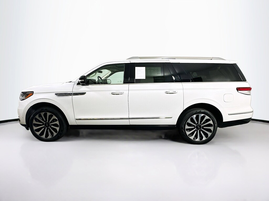2023 Lincoln Navigator L Reserve with a V6 engine, 10-speed automatic transmission, and 4WD, finished in Pristine White Metallic Tri-Coat. This vehicle comes with the remainder of the factory warranty, is factory certified, and includes our free first oil change, 5-day return, 30-day exchange policy, and the Fred Beans Auto Rewards Program.