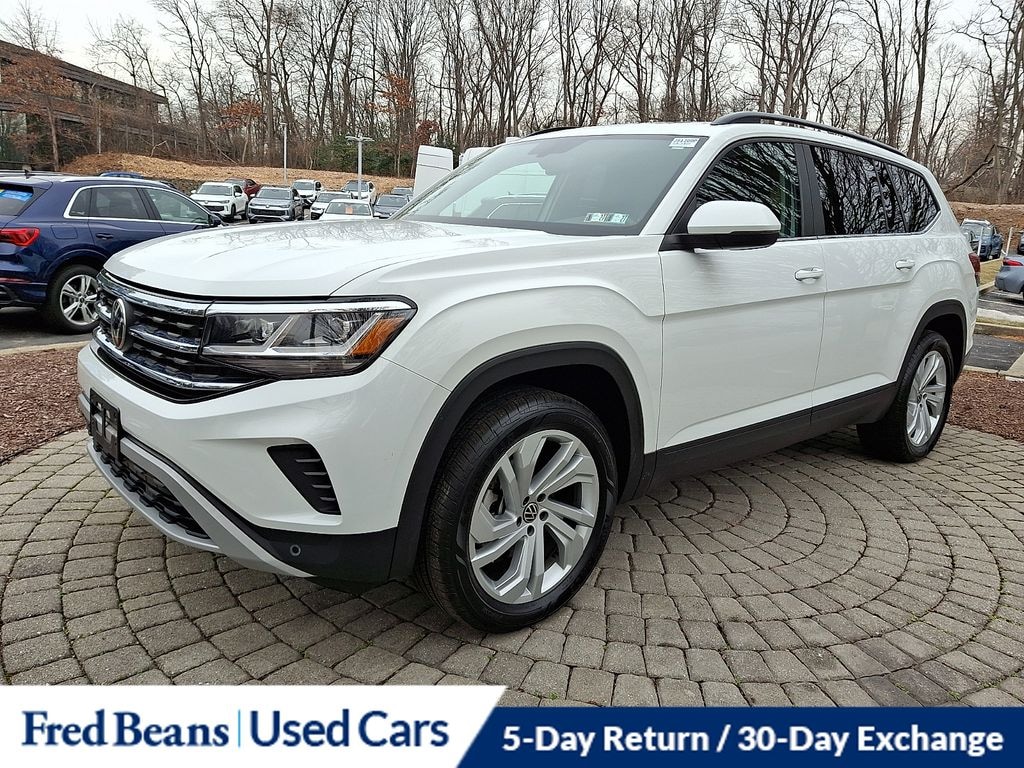 2022 Volkswagen Atlas 2.0T SE w/Technology 2.0L TSI 8-Speed Automatic with Tiptronic AWD 4D Sport Utility Pure White Great Service History, Remainder of Factory Warranty, Factory Certified Vehicle, Auto Reward Program.