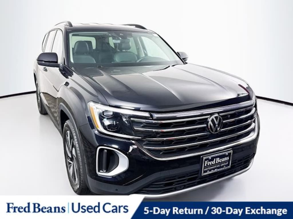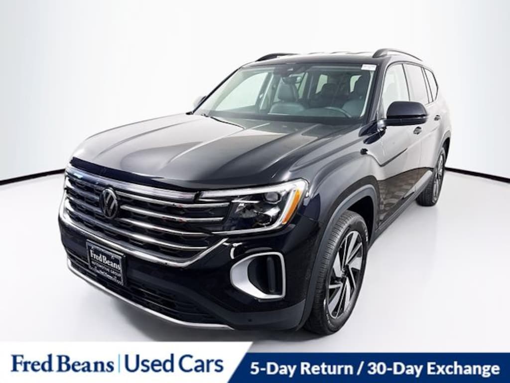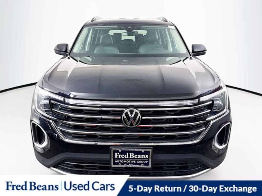 2025 Volkswagen Atlas 2.0T SE w/Technology 2.0L TSI 8-Speed Automatic AWD 4D Sport Utility Black Triton Certified Vehicle, 7 Year / 100k Powertrain Warranty, 12 Month / 12,000 Mile Comprehensive Warranty, 5 Day Return / 30 Day Exchange, Auto Reward Program, AM/FM radio: SiriusXM with 360L, Auto High-beam Headlights, Auto-dimming Rear-View mirror, Automatic temperature control, Exterior Parking Camera Rear, Front dual zone A/C, Fully automatic headlights, Heated door mirrors, Heated front seats, Heated steering wheel, perforated V-Tex leatherette seating surfaces, Power door mirrors, Power driver seat, Power Liftgate, Rain sensing wipers, Remote keyless entry, Steering wheel mounted audio controls, Ventilated front seats.