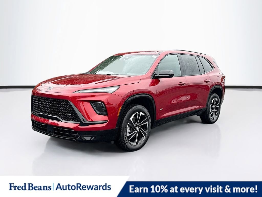 Cherry Red Tintcoat 2026 Buick Enclave Sport Touring FWD 8-Speed Automatic 2.5L DOHC FWD, 110-Volt Power Outlet, 12 Speakers, 2nd Row 1-Touch Flat Folding Seat, 3rd Row 60/40 Power Split-Folding Bench, 3rd row seats: split-bench, 4-Wheel Disc Brakes, ABS brakes, Air Conditioning, Alloy wheels, AM/FM radio: SiriusXM with 360L, Apple CarPlay/Android Auto, Auto High-beam Headlights, Auto-dimming door mirrors, Auto-dimming Rear-View mirror, Automatic temperature control, Bose Premium 12-Speaker Audio System, Brake assist, Bumpers: body-color, Compass, Delay-off headlights, Driver 4-Way Power Lumbar Seat Adjuster, Driver 8-Way Power Seat Adjuster, Driver door bin, Driver vanity mirror, Dual front impact airbags, Dual front side impact airbags, Electronic Stability Control, Emergency communication system: OnStar and Buick connected services capable, Four wheel independent suspension, Front anti-roll bar, Front Bucket Seats, Front Center Armrest, Front dual zone A/C, Front Passenger 4-Way Power Lumbar Seat Adjuster, Front Passenger 6-Way Power Seat Adjuster, Front reading lights, Fully automatic headlights, Head-Up Display, Heated door mirrors, Heated Driver & Front Passenger Seats, Heated front seats, Heated steering wheel, Heated Wiper Park, Illuminated entry, Inside Rearview Auto-Dimming Rear Camera Mirror, Leather steering wheel, Low tire pressure warning, Memory Settings, Navigation System, Occupant sensing airbag, Outside temperature display, Overhead airbag, Overhead console, Panic alarm, Passenger door bin, Passenger vanity mirror, Perforated Leatherette Seat Trim, Power door mirrors, Power driver seat, Power Liftgate, Power Package, Power passenger seat, Power steering, Power windows, Preferred Equipment Group 1SM, Premium audio system: Buick Infotainment System, Radio data system, Radio: Infotainment Center, Rear air conditioning, Rear anti-roll bar, Rear reading lights, Rear side impact airbag, Rear window defroster, Rear window wiper, Remote keyless entry, Security system, SiriusXM w/360L Trial Subscription, Speed control, Speed-sensing steering, Spoiler, Sport steering wheel, Steering wheel mounted audio controls, Tachometer, Telescoping steering wheel, Tilt steering wheel, Traction control, Trip computer, Turn signal indicator mirrors, Universal Home Remote, Variably intermittent wipers, Voltmeter, Wheels: 20 Alloy w/High Gloss Black, Wireless Apple CarPlay, Wireless Google Android Auto, FWD.