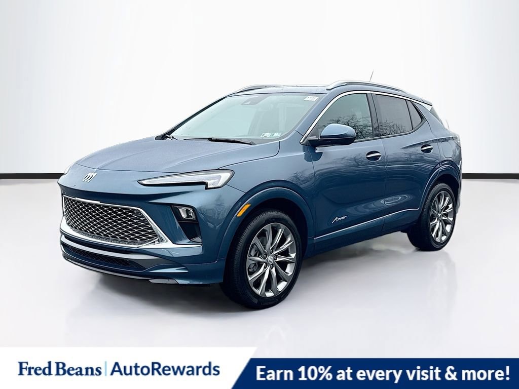 Ocean Blue Metallic 2026 Buick Encore GX Avenir AWD 9-Speed Automatic ECOTEC 1.3L Turbo 2-Way Front Passenger Power Lumbar, 2-Way Power Driver Lumbar Control, 3.17 Final Drive Axle Ratio, 4-Wheel Disc Brakes, 6-Way Power Front Passenger Seat Adjuster, 7 Speakers, 8-Way Power Driver Seat Adjuster, ABS brakes, Air Conditioning, Alloy wheels, AM/FM radio: SiriusXM, Auto High-beam Headlights, Auto-dimming Rear-View mirror, Automatic temperature control, Avenir Convenience Package, Bose Premium 7-Speaker Audio System, Brake assist, Bumpers: body-color, Compass, Delay-off headlights, Driver door bin, Driver vanity mirror, Dual front impact airbags, Dual front side impact airbags, Electronic Stability Control, Emergency communication system: OnStar and Buick connected services capable, Enhanced Performance 7-Speaker System with Amplifier, Front anti-roll bar, Front Bucket Seats, Front Center Armrest, Front dual zone A/C, Front Intermittent Rainsense Wipers, Front reading lights, Front wheel independent suspension, Fully automatic headlights, Garage door transmitter, Hands Free Power Liftgate, Heated door mirrors, Heated Driver and Front Passenger Seats, Heated front seats, Heated steering wheel, Illuminated entry, Knee airbag, Low tire pressure warning, Memory seat, Occupant sensing airbag, Outside temperature display, Overhead airbag, Overhead console, Panic alarm, Passenger door bin, Passenger vanity mirror, Perforated Leather-Appointed Seat Trim, Power door mirrors, Power driver seat, Power Panoramic Tilt-Sliding Moonroof, Power passenger seat, Power steering, Power windows, Preferred Equipment Group 1SL, Radio data system, Radio: AM/FM Audio System, Rear Park Assist, Rear reading lights, Rear seat center armrest, Rear side impact airbag, Rear window defroster, Rear window wiper, Remote keyless entry, Ride and Handling Suspension, Security system, SiriusXM Trial Subscription, Speed control, Speed-sensing steering, Split folding rear seat, Spoiler, Steering wheel mounted audio controls, Tachometer, Telescoping steering wheel, Tilt steering wheel, Traction control, Trip computer, Variably intermittent wipers, Wheels: 19 Avenir Premium Pearl Nickel Aluminum, Wireless Apple CarPlay/Wireless Android Auto.