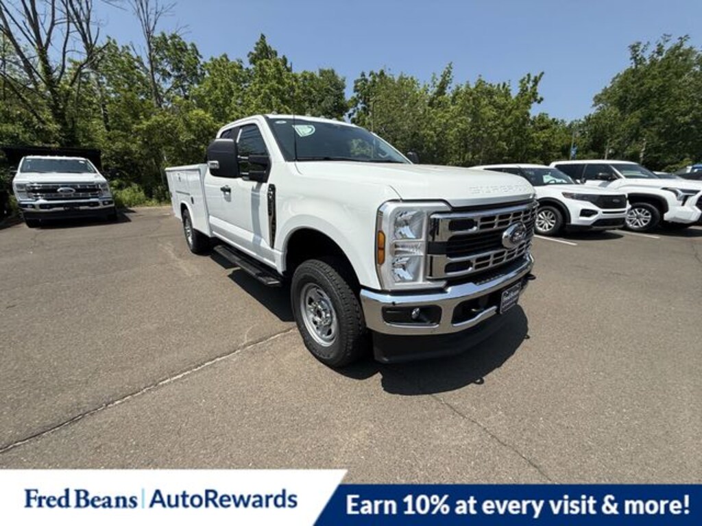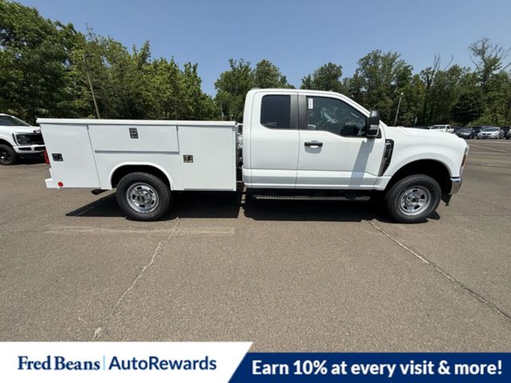 Oxford White 2025 Ford F-350SD XL 9ft Reading Service Body 4WD 10-Speed Automatic 7.3L V8 PFI OHV 16V Federal 335hp