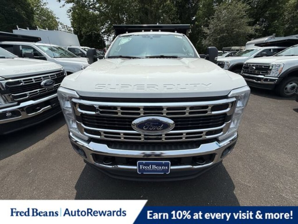 Oxford White 2025 Ford F-550SD XL 11ft Rugby Mason Dump 4WD 10-Speed Automatic 7.3L V8 PFI OHV 16V Federal 335hp
