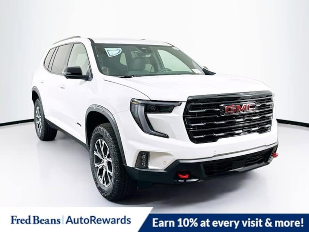 Summit White 2025 GMC Acadia AT4 AWD 8-Speed Automatic 2.5L DOHC AWD, Forest Storm W/Mahogany Accents Cloth.