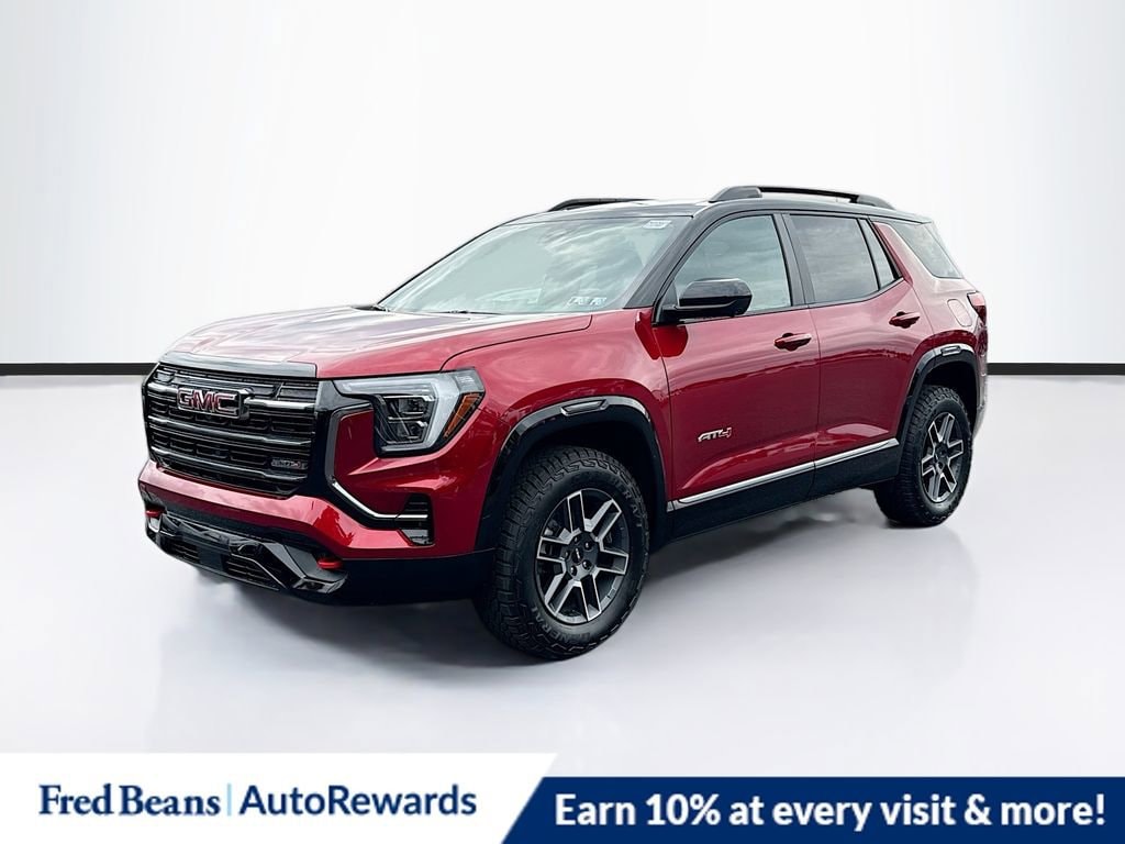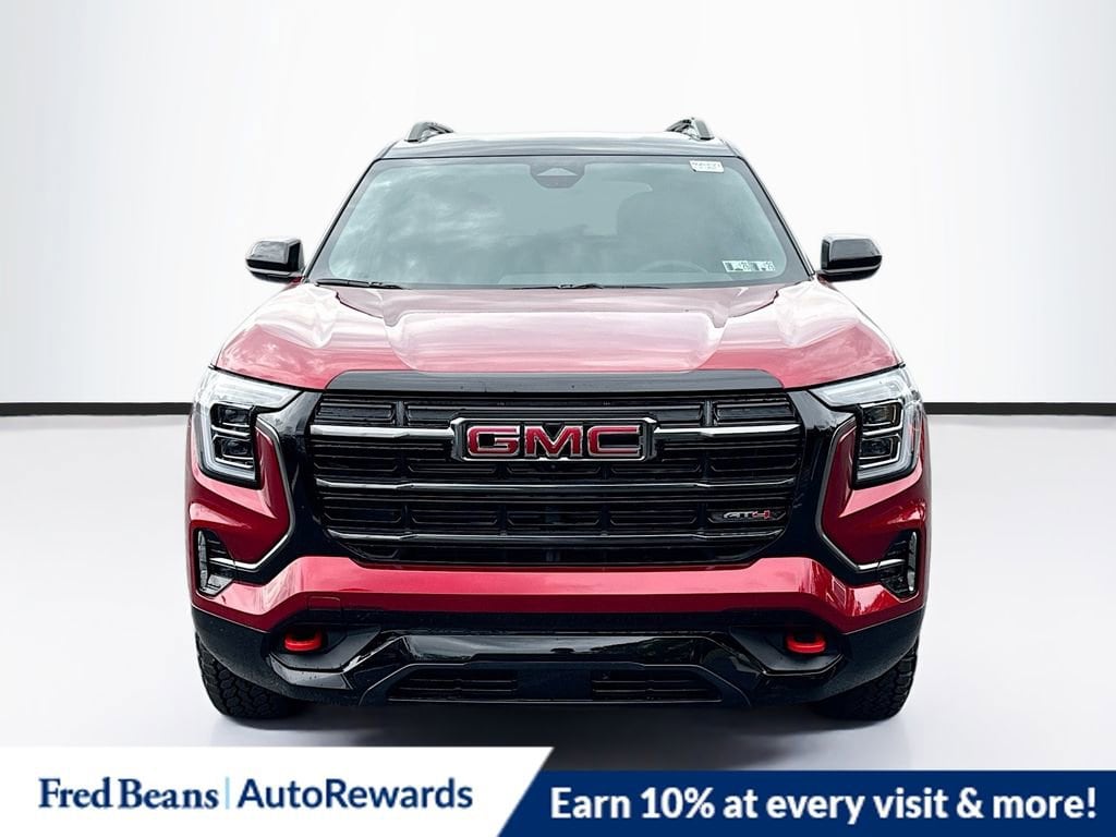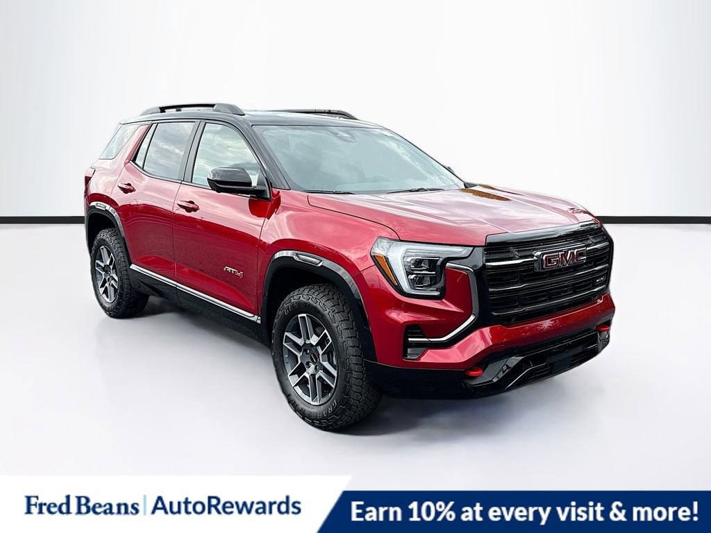 Volcanic Red Tintcoat 2026 GMC Terrain AT4 AWD 8-Speed Automatic with Overdrive 1.5L DOHC AWD, 2-Way Power Driver Lumbar Seat Adjuster, 3.47 Final Drive Axle Ratio, 4-Wheel Disc Brakes, 6 Speakers, 6-Speaker Audio System Feature, 8-Way Power Driver Seat Adjuster, ABS brakes, Air Conditioning, Alloy wheels, AM/FM radio: SiriusXM, Auto High-beam Headlights, Automatic temperature control, Brake assist, Bumpers: body-color, Cloth/Core Tec Seat Trim, Compass, Delay-off headlights, Driver & Front Passenger Heated Seats, Driver door bin, Driver vanity mirror, Dual front impact airbags, Dual front side impact airbags, Ebony Twilight Metallic Roof, Ebony Twilight Mirror Caps, Electronic Stability Control, Emergency communication system: OnStar and GMC connected services capable, Four wheel independent suspension, Front anti-roll bar, Front Bucket Seats, Front Center Armrest, Front dual zone A/C, Front fog lights, Front Passenger 4-Way Manual Seat Adjuster, Front reading lights, Fully automatic headlights, Garage door transmitter, HD Surround Vision, Heated door mirrors, Heated front seats, Heated steering wheel, Illuminated entry, Low tire pressure warning, Navigation System, Occupant sensing airbag, Outside temperature display, Overhead airbag, Overhead console, Panic alarm, Passenger door bin, Passenger vanity mirror, Power door mirrors, Power driver seat, Power Liftgate, Power steering, Power windows, Preferred Equipment Group 4SB, Radio data system, Radio: Premium GMC Infotainment System, Rain sensing wipers, Rear air conditioning, Rear anti-roll bar, Rear Camera Mirror, Rear Camera Mirror Washer, Rear Pedestrian Alert, Rear seat center armrest, Rear window defroster, Rear window wiper, Remote keyless entry, Security system, SiriusXM w/360L Trial Subscription, Speed control, Speed-sensing steering, Split folding rear seat, Spoiler, Sport steering wheel, Steering wheel mounted audio controls, Tachometer, Technology Package II, Telescoping steering wheel, Tilt steering wheel, Traction control, Traffic Sign Recognition, Trip computer, Variably intermittent wipers, Wheels: 17 Dark Machined Aluminum, Wireless Apple CarPlay/Wireless Android Auto, AWD.