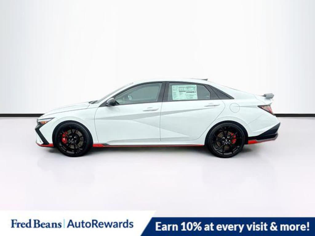 Atlas White 2025 Hyundai Elantra N FWD 6-Speed Manual 2.0L Turbocharged 4-Wheel Disc Brakes, 8 Speakers, ABS brakes, Air Conditioning, Alloy wheels, AM/FM radio: SiriusXM, Apple CarPlay & Android Auto, Auto High-beam Headlights, Automatic temperature control, Brake assist, Bumpers: body-color, Cargo Net, Compass, Delay-off headlights, Driver door bin, Driver vanity mirror, Dual front impact airbags, Dual front side impact airbags, Electronic Stability Control, Emergency communication system, Exterior Parking Camera Rear, First Aid Kit, Four wheel independent suspension, Front anti-roll bar, Front Bucket Seats, Front Center Armrest w/Storage, Front dual zone A/C, Front reading lights, Fully automatic headlights, Heated door mirrors, Heated front seats, Illuminated entry, Leather Shift Knob, Leather steering wheel, Leather-Trimmed with Microsuede Inserts Seat Trim, Low tire pressure warning, N Light Heated Sport Bucket Seats, Navigation System, Occupant sensing airbag, Option Group 01, Outside temperature display, Overhead airbag, Overhead console, Panic alarm, Passenger door bin, Passenger vanity mirror, Power door mirrors, Power steering, Power windows, Radio: Bose AM/FM/HD/SXM Audio System, Rear side impact airbag, Rear window defroster, Remote keyless entry, Security system, Speed control, Speed-sensing steering, Spoiler, Steering wheel mounted audio controls, Tachometer, Telescoping steering wheel, Tilt steering wheel, Traction control, Trip computer, Turn signal indicator mirrors, Variably intermittent wipers, Wheels: 19" x 8.0" Forged Alloy.