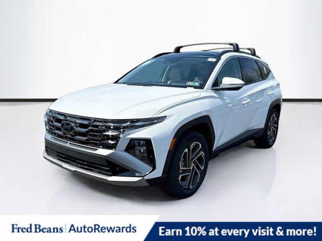 Creamy White Pearl 2026 Hyundai Tucson Hybrid Limited AWD 6-Speed Automatic 1.6L Turbo GDI 4-Cylinder 1.6L Turbo GDI 4-Cylinder, 4-Wheel Disc Brakes, 8 Speakers, ABS brakes, Air Conditioning, Alloy wheels, AM/FM radio: SiriusXM, Apple CarPlay & Android Auto, Auto High-beam Headlights, Auto-dimming Rear-View mirror, Automatic temperature control, Brake assist, Bumpers: body-color, Cargo Blocks, Cargo Net, Cargo Tray, Carpeted Floor Mats, Delay-off headlights, Driver door bin, Driver vanity mirror, Dual front impact airbags, Dual front side impact airbags, Electronic Stability Control, Emergency communication system: None, First Aid Kit, Four wheel independent suspension, Front anti-roll bar, Front Bucket Seats, Front Center Armrest, Front dual zone A/C, Front reading lights, Fully automatic headlights, Garage door transmitter: HomeLink, Heads-Up Display, Heated and Ventilated Front Bucket Seats, Heated door mirrors, Heated front seats, Heated rear seats, Heated steering wheel, Illuminated entry, Leather steering wheel, Leather-Trimmed Seat Trim, Low tire pressure warning, Memory seat, Navigation System, Occupant sensing airbag, Option Group 01, Outside temperature display, Overhead airbag, Overhead console, Panic alarm, Passenger door bin, Passenger vanity mirror, Power door mirrors, Power driver seat, Power Liftgate, Power moonroof, Power passenger seat, Power steering, Power windows, Radio data system, Radio: Bose Premium w/AM/FM/HD Audio System, Rain sensing wipers, Rear anti-roll bar, Rear reading lights, Rear seat center armrest, Rear side impact airbag, Rear window defroster, Rear window wiper, Remote keyless entry, Roof Rack Cross Rails, Security system, Severe Weather Kit, Speed control, Split folding rear seat, Spoiler, Steering wheel mounted audio controls, Tachometer, Telescoping steering wheel, Tilt steering wheel, Traction control, Trip computer, Turn signal indicator mirrors, Variably intermittent wipers, Ventilated front seats, Wheels: 19" x 7.5J Alloy, 1.6L Turbo GDI 4-Cylinder.