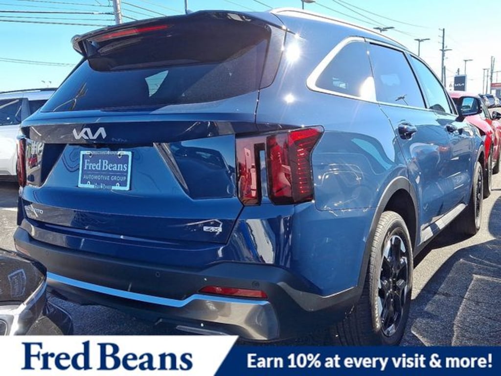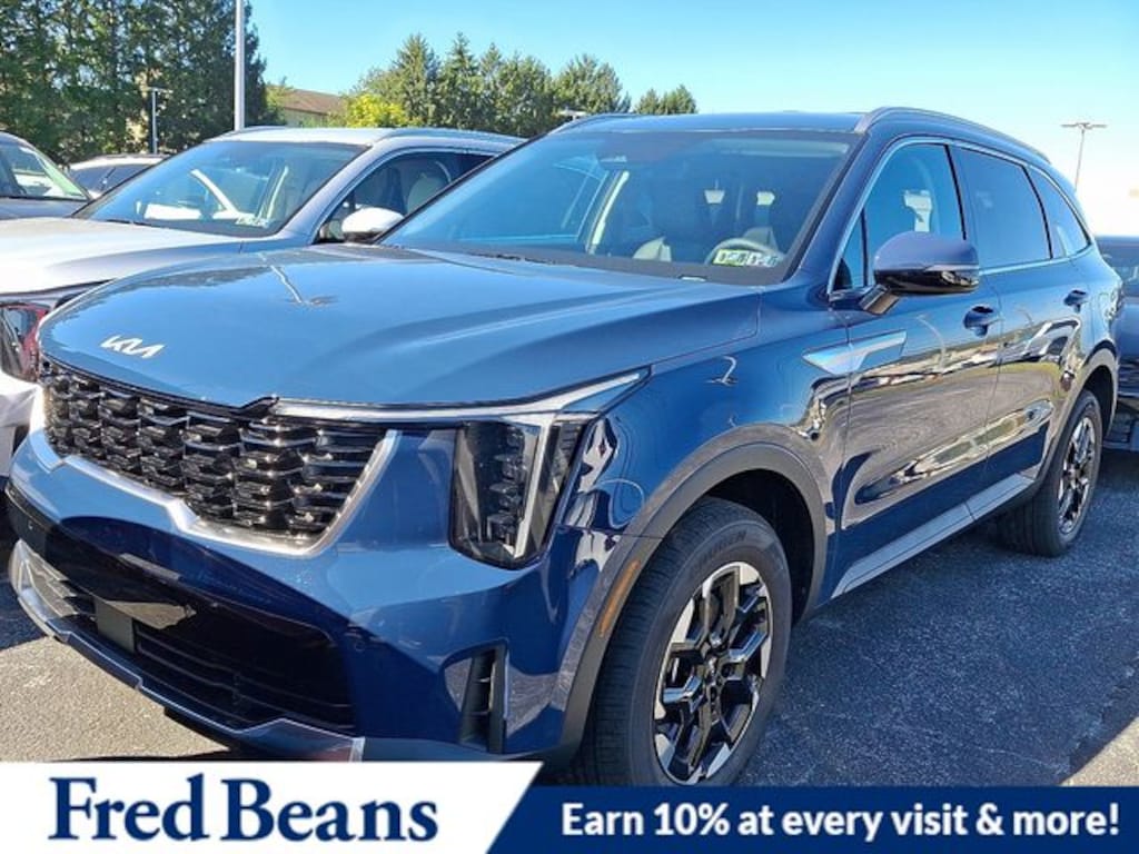 Visit our Website for a Complimentary CarFax Report!!!, Free First Oil Change, Auto Reward Program, AWD, 3rd row seats: split-bench, 4-Wheel Disc Brakes, 6 Speakers, ABS brakes, Air Conditioning, Alloy wheels, AM/FM radio: SiriusXM, Apple CarPlay & Android Auto, Auto High-beam Headlights, Auto-Dimming Mirror w/HomeLink, Automatic temperature control, Brake assist, Bumpers: body-color, Delay-off headlights, Driver door bin, Driver vanity mirror, Dual front impact airbags, Dual front side impact airbags, Electronic Stability Control, Emergency communication system: 911 Connect, Exterior Parking Camera Rear, Four wheel independent suspension, Front anti-roll bar, Front Bucket Seats, Front Center Armrest, Front dual zone A/C, Front reading lights, Fully automatic headlights, Heated door mirrors, Heated Front Bucket Seats, Heated front seats, Illuminated entry, Knee airbag, Leather Shift Knob, Leather steering wheel, Low tire pressure warning, Occupant sensing airbag, Outside temperature display, Overhead airbag, Overhead console, Panic alarm, Passenger door bin, Passenger vanity mirror, Power door mirrors, Power driver seat, Power steering, Power windows, Radio data system, Radio: AM/FM Standard Sound System, Rear anti-roll bar, Rear reading lights, Rear seat center armrest, Rear side impact airbag, Rear window defroster, Rear window wiper, Remote keyless entry, Security system, Speed control, Speed-sensing steering, Split folding rear seat, Spoiler, Steering wheel mounted audio controls, SynTex Artificial Leather Seat Trim, Tachometer, Telescoping steering wheel, Tilt steering wheel, Traction control, Trip computer, Turn signal indicator mirrors, Variably intermittent wipers, Wheels: 18" Gloss Black Alloy, AWD. 2026 Kia Sorento S S 2.5L I4 DGI DOHC 16V LEV3-SULEV30 191hp AWD Midnight Lake Blue Price includes: $1500 - KFA Dealer Choice Program: $1500 discount and 5.50% APR for 36 months. $30.20 per $1000 financed. Available to well qualified buyers who finance through Kia Finance America. 506. Exp. 11/03/2025