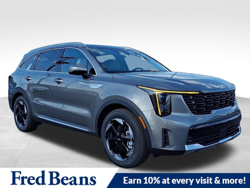 1.6L Turbo GDI 4-Cylinder, 3rd row seats: split-bench, 4-Wheel Disc Brakes, 6 Speakers, ABS brakes, Air Conditioning, Alloy wheels, AM/FM radio: SiriusXM, Apple CarPlay & Android Auto, Auto High-beam Headlights, Auto-dimming Rear-View mirror, Automatic temperature control, Brake assist, Bumpers: body-color, Delay-off headlights, Driver door bin, Driver vanity mirror, Dual front impact airbags, Dual front side impact airbags, Electronic Stability Control, Emergency communication system: 911 Connect, Exterior Parking Camera Rear, Four wheel independent suspension, Front anti-roll bar, Front Bucket Seats, Front Center Armrest, Front dual zone A/C, Front fog lights, Front reading lights, Fully automatic headlights, Heated door mirrors, Heated Front Bucket Seats, Heated front seats, Illuminated entry, Knee airbag, Leather steering wheel, Low tire pressure warning, Navigation System, Occupant sensing airbag, Outside temperature display, Overhead airbag, Overhead console, Panic alarm, Passenger door bin, Passenger vanity mirror, Power door mirrors, Power driver seat, Power Liftgate, Power passenger seat, Power steering, Power windows, Radio data system, Radio: AM/FM/SiriusXM Audio System, Rear anti-roll bar, Rear reading lights, Rear seat center armrest, Rear side impact airbag, Rear window defroster, Rear window wiper, Remote keyless entry, Security system, Speed control, Speed-sensing steering, Split folding rear seat, Spoiler, Steering wheel mounted audio controls, SynTex Artificial Leather Seat Trim, Tachometer, Telescoping steering wheel, Tilt steering wheel, Traction control, Trip computer, Turn signal indicator mirrors, Variably intermittent wipers, Wheels: 19" x 7.5J Machine-Finished Aero-Alloy, 1.6L Turbo GDI 4-Cylinder. 2026 Kia Sorento Hybrid EX EX 1.6L Turbo GDI 4-Cylinder AWD Sand Price includes: $3000 - KFA Dealer Choice Program: $3000 discount and 5.25% APR for 36 months. $30.08 per $1000 financed. Available to well qualified buyers who finance through Kia Finance America. 506. Exp. 05/04/2026