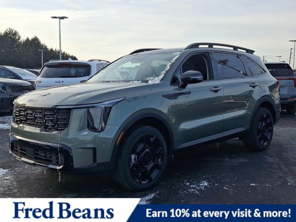Visit our Website for a Complimentary CarFax Report!!!, Auto Reward Program, AWD, 12 Speakers, 3rd row seats: split-bench, 4-Wheel Disc Brakes, ABS brakes, Air Conditioning, All Weather Floor Mats, Alloy wheels, AM/FM radio: SiriusXM, Apple CarPlay & Android Auto, Auto High-beam Headlights, Auto-Dimming Mirror w/HomeLink (PnP), Auto-dimming Rear-View mirror, Automatic temperature control, Brake assist, Bumpers: body-color, Delay-off headlights, Driver door bin, Driver vanity mirror, Dual front impact airbags, Dual front side impact airbags, Electronic Stability Control, Emergency communication system: 911 Connect, Exterior Parking Camera Rear, Four wheel independent suspension, Front anti-roll bar, Front Bucket Seats, Front Center Armrest, Front dual zone A/C, Front fog lights, Front reading lights, Fully automatic headlights, Heated door mirrors, Heated Front Bucket Seats, Heated front seats, Illuminated entry, Knee airbag, Leather Shift Knob, Leather steering wheel, Low tire pressure warning, Navigation System, Occupant sensing airbag, Outside temperature display, Overhead airbag, Overhead console, Panic alarm, Passenger door bin, Passenger vanity mirror, Power door mirrors, Power driver seat, Power Liftgate, Power moonroof, Power passenger seat, Power steering, Power windows, Radio data system, Radio: AM/FM Standard Sound System, Rear anti-roll bar, Rear reading lights, Rear side impact airbag, Rear window defroster, Rear window wiper, Remote keyless entry, Security system, Speed control, Speed-sensing steering, Split folding rear seat, Spoiler, Steering wheel mounted audio controls, SynTex Artificial Leather Seat Trim, Tachometer, Telescoping steering wheel, Tilt steering wheel, Tow Hitch, Traction control, Trip computer, Turn signal indicator mirrors, Variably intermittent wipers, Wheels: 20" Gloss Black X-Line Alloy, AWD. 2026 Kia Sorento X-Line EX X-Line EX 2.5L I4 DGI Turbocharged DOHC 16V LEV3-SULEV30 281hp AWD Jungle Green Price includes: $2500 - KFA Dealer Choice Program: $2500 discount and 5.25% APR for 36 months. $30.08 per $1000 financed. Available to well qualified buyers who finance through Kia Finance America. 506. Exp. 02/02/2026