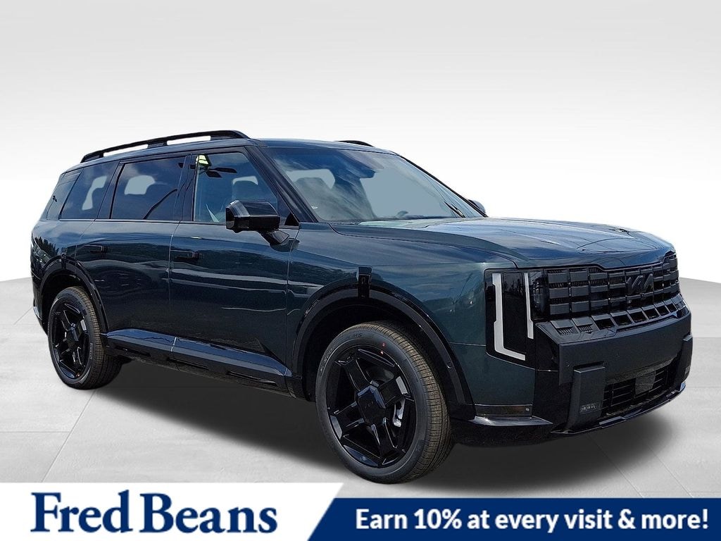 2.5L 4-Cylinder, 10-Way Power Driver Seat with Thigh Support, 14 Speakers, 3rd row seats: split-bench, 4-Wheel Disc Brakes, ABS brakes, Air Conditioning, Alloy wheels, AM/FM radio: SiriusXM, Apple CarPlay & Android Auto, Audio memory, Auto High-beam Headlights, Auto-dimming door mirrors, Auto-dimming Rear-View mirror, Auto-leveling suspension, Automatic temperature control, Brake assist, Bumpers: body-color, Compass, Delay-off headlights, Driver door bin, Driver vanity mirror, Dual front impact airbags, Dual front side impact airbags, Electronic Stability Control, Emergency communication system: 911 Connect, Exterior Parking Camera Rear, Four wheel independent suspension, Front anti-roll bar, Front Bucket Seats, Front Center Armrest, Front dual zone A/C, Front fog lights, Front reading lights, Full SynTex Seat Trim, Fully automatic headlights, Garage door transmitter: HomeLink, Heated and Ventilated Front Bucket Seats, Heated door mirrors, Heated front seats, Heated steering wheel, HVAC memory, Illuminated entry, Knee airbag, Low tire pressure warning, Memory seat, Millstone Interior Color Package, Navigation System, Occupant sensing airbag, Outside temperature display, Overhead airbag, Overhead console, Panic alarm, Passenger door bin, Passenger vanity mirror, Power door mirrors, Power driver seat, Power Liftgate, Power moonroof, Power passenger seat, Power steering, Power windows, Radio data system, Radio: 14 Speaker Meridian Audio System, Rear air conditioning, Rear anti-roll bar, Rear reading lights, Rear side impact airbag, Rear window defroster, Rear window wiper, Reclining 3rd row seat, Remote keyless entry, Security system, Speed control, Speed-sensing steering, Split folding rear seat, Spoiler, Steering wheel mounted audio controls, Tachometer, Telescoping steering wheel, Tilt steering wheel, Tow Hitch, Towing Package, Traction control, Trip computer, Turn signal indicator mirrors, Variably intermittent wipers, Ventilated front seats, Wheels: 21" x 8" Type A Aluminum Alloy, 2.5L 4-Cylinder. 2027 Kia Telluride Hybrid X-Line SX X-Line SX 2.5L 4-Cylinder AWD Black Jade Green