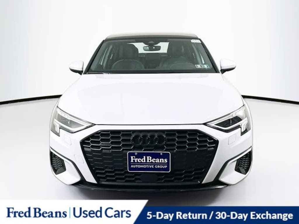 2023 Audi A3 40 Premium quattro 2.0L 4-Cylinder TFSI 7-Speed Automatic S tronic quattro 4D Sedan Glacier White Triton Certified Vehicle, 7 Year / 100k Powertrain Warranty, 12 Month /12,000 Mile Comprehensive Warranty, quattro, Black Leather.