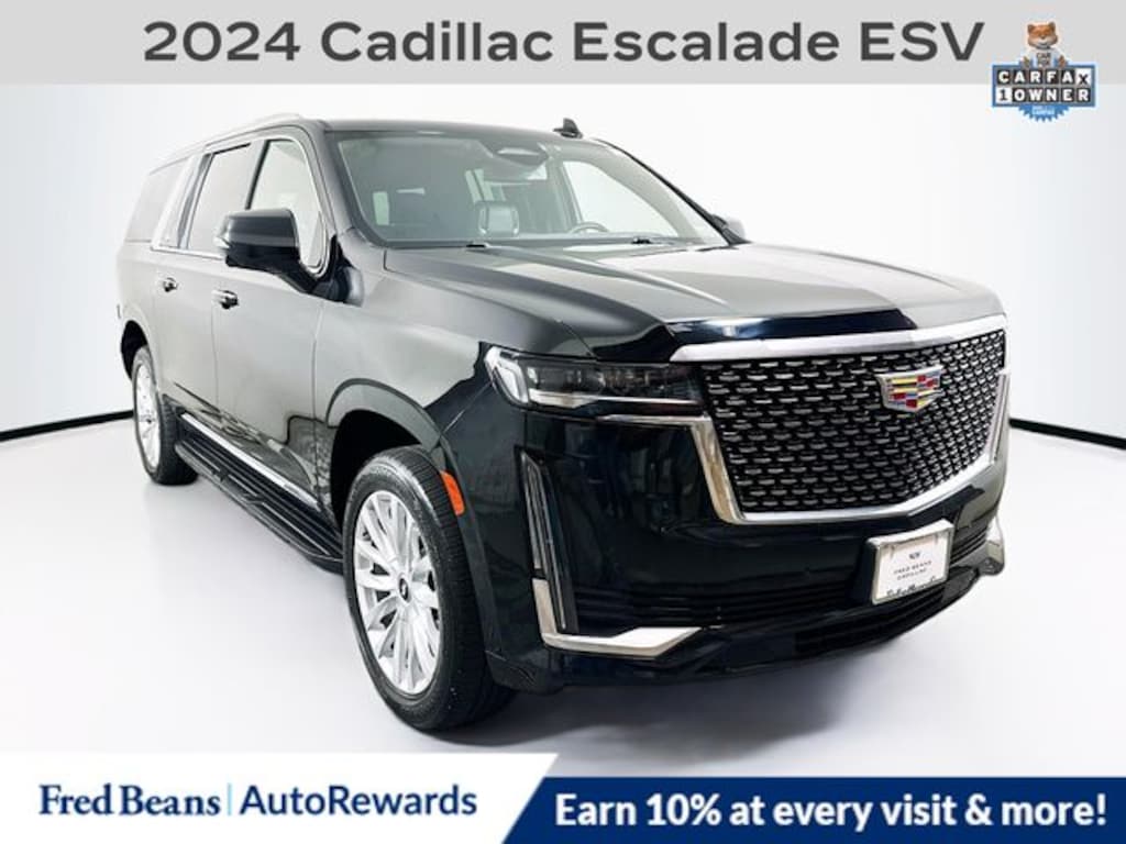 Step inside and be captivated by the Escalade ESV's luxurious cabin, featuring premium Inteluxe seating, a heated steering wheel, and a state-of-the-art 16.9" OLED infotainment system. The advanced technology suite, including wireless Apple CarPlay and Android Auto, keeps you seamlessly connected and entertained on the go.