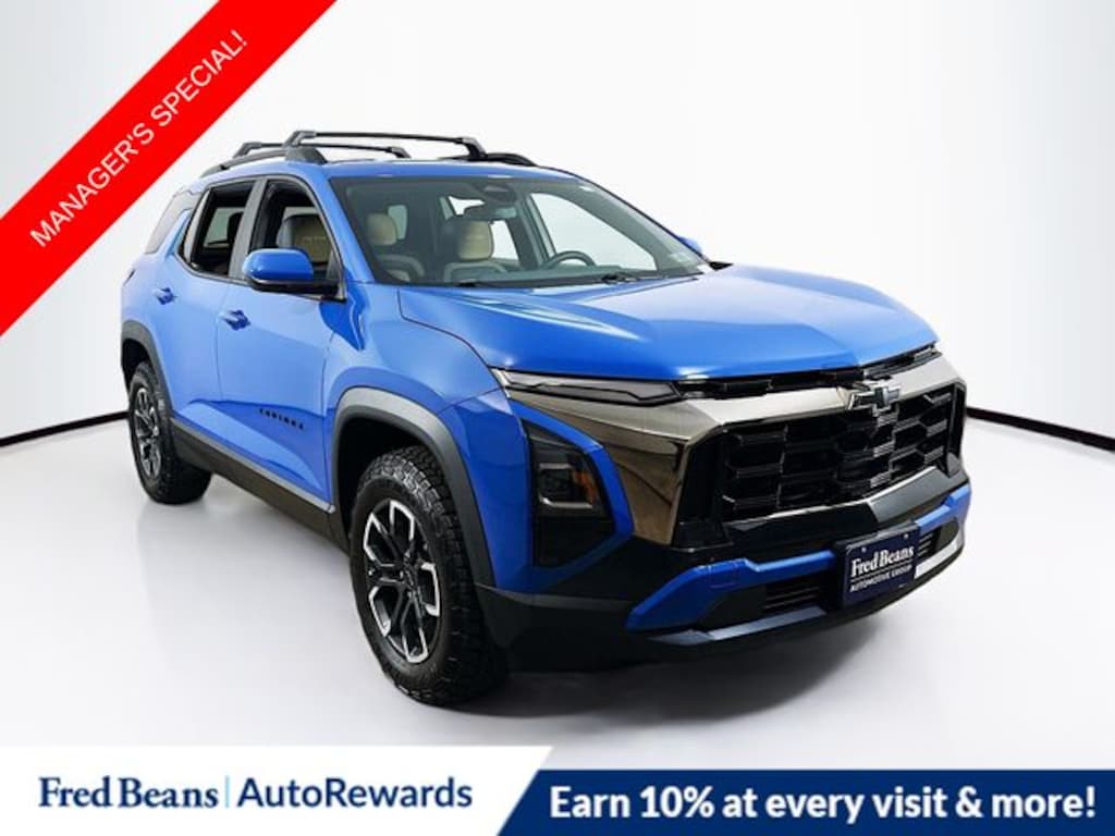 2025 Chevrolet Equinox ACTIV 1.5L DOHC 8-Speed Automatic AWD 4D Sport Utility Reef Blue Metallic AWD, 2-Way Power Driver Lumbar Control Seat Adjuster, 3.47 Final Drive Axle Ratio, 4-Wheel Disc Brakes, 6 Speakers, ABS brakes, Air Conditioning, Alloy wheels, AM/FM radio: SiriusXM, Auto High-beam Headlights, Automatic temperature control, Brake assist, Bumpers: body-color, Compass, Delay-off headlights, Driver 8-Way Power Seat Adjuster, Driver door bin, Driver vanity mirror, Dual front impact airbags, Dual front side impact airbags, Electronic Stability Control, Emergency communication system: OnStar and Chevrolet connected services capable, Four wheel independent suspension, Front anti-roll bar, Front Bucket Seats, Front Center Armrest, Front dual zone A/C, Front Passenger 4-Way Manual Seat Adjuster, Front reading lights, Fully automatic headlights, Garage door transmitter, Heated door mirrors, Heated Driver & Front Passenger Seats, Heated front seats, Heated steering wheel, Illuminated entry, Low tire pressure warning, Navigation System, Occupant sensing airbag, Outside temperature display, Overhead airbag, Overhead console, Panic alarm, Passenger door bin, Passenger vanity mirror, Power door mirrors, Power driver seat, Power Liftgate, Power steering, Power windows, Preferred Equipment Group KDZ, Premium audio system: Chevrolet Infotainment 3 Plus, Radio data system, Radio: 11.3" Diagonal Advanced Color LCD Display, Rain sensing wipers, Rear anti-roll bar, Rear reading lights, Rear seat center armrest, Rear window defroster, Rear window wiper, Remote keyless entry, Roof Rack Cross Rails (LPO), Security system, SiriusXM, Speed control, Speed-sensing steering, Split folding rear seat, Spoiler, Steering wheel mounted audio controls, Sueded Microfiber Seat Trim, Tachometer, Telescoping steering wheel, Tilt steering wheel, Traction control, Trip computer, Universal Home Remote Non-Functional, Variably intermittent wipers, Wheels: 17" Dark Android Machined-Face Aluminum, AWD.