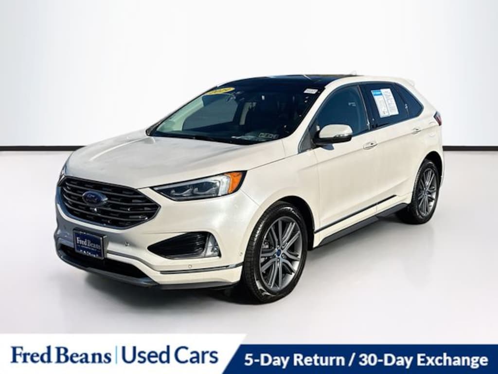 2019 Ford Edge Titanium EcoBoost 2.0L I4 GTDi DOHC Turbocharged VCT 8-Speed Automatic AWD 4D Sport Utility White Platinum 12 Month / 12,000 Mile Comprehensive Warranty, Triton Certified Vehicle. 21/28 City/Highway MPG