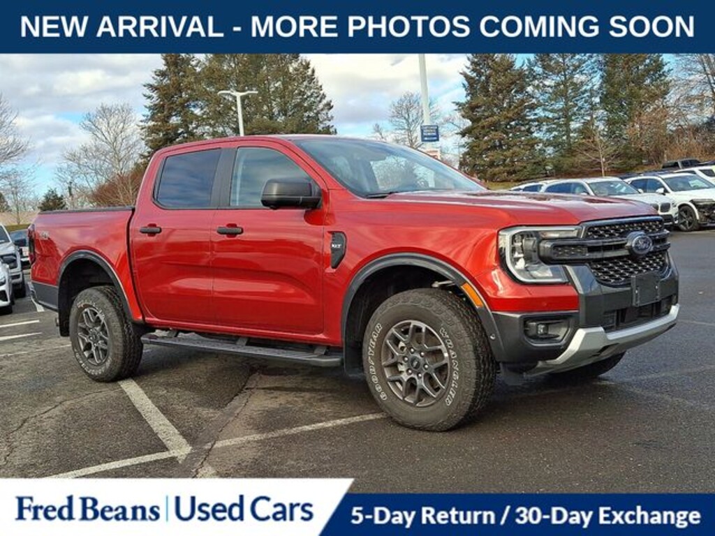 Recent Arrival! 2024 Ford Ranger XLT EcoBoost 2.3L I4 GTDi DOHC Turbocharged VCT 10-Speed Automatic 4D Crew Cab Chili Pepper Red Remainder of Factory Warranty, Free First Oil Change, 5 Day Return / 30 Day Exchange, Auto Reward Program, Ranger XLT, 4D Crew Cab, EcoBoost 2.3L I4 GTDi DOHC Turbocharged VCT, 10-Speed Automatic, 4WD, Chili Pepper Red, Ebony Cloth, 12" Display in Center Stack, 360-Degree Camera, Adaptive Cruise Control, Advanced Towing Package Plus Technology Package, Class IV Trailer Hitch Receiver, Connected Built-In Navigation, Dual-Zone Electronic Climate Control (DEATC), Electronic-Locking Rear Differential, Enhanced Active Park Assist, Equipment Group 301A High, Front Parking Sensors, FX4 Off-Road Box Decal, FX4 Off-Road Package, FX4 Selectable Drive Modes, Gray Painted Center Bar & Grille Surround, Gray Painted Front Fascia & Rear Bumper, Gray Painted Wheel Lip Molding, Navigation system: Connected Navigation, Off-Road Screen in Center Stack, Off-Road Tuned Shocks, Power-Sliding Rear Window, Premium Cloth Front Heated Bucket Seats, Pro Trailer Backup Assist, Reverse Park Aid w/Trailer Guidance, Sport Appearance Package, Sport Box Decal, Trailer Brake Controller, Trailer Tow Package.