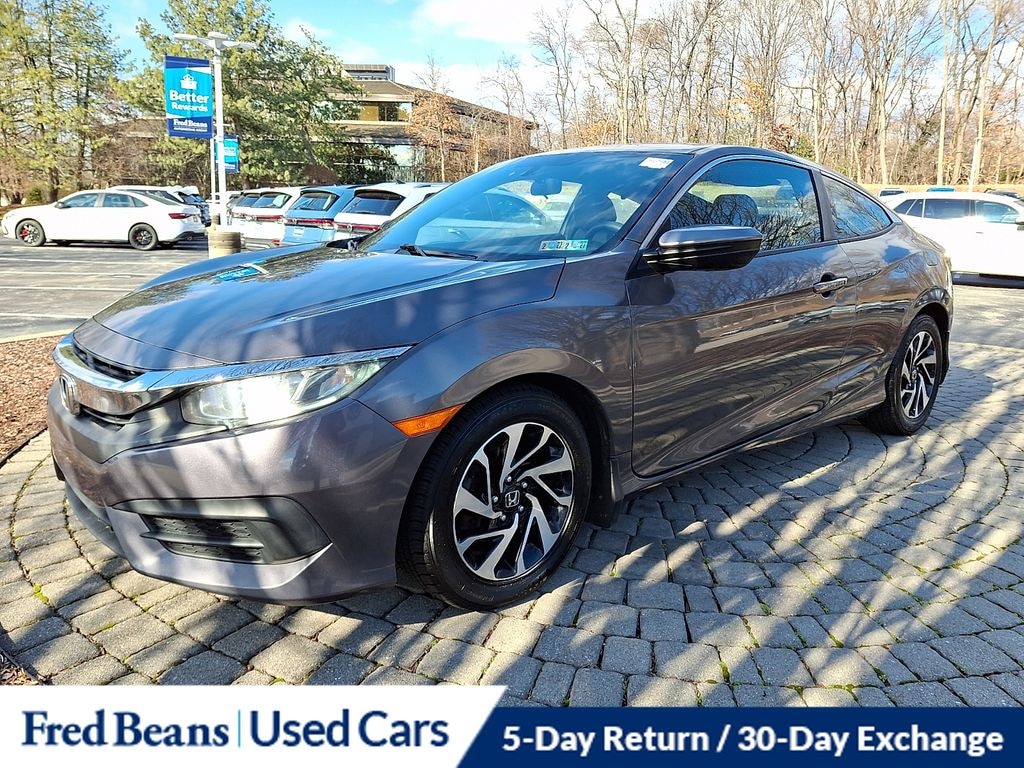 2016 Honda Civic LX 2.0L I4 DOHC 16V i-VTEC CVT FWD 2D Coupe Modern Steel Metallic Great Service History, AS-IS Vehicle, Auto Reward Program, Black/Gray w/Cloth Seat Trim.
