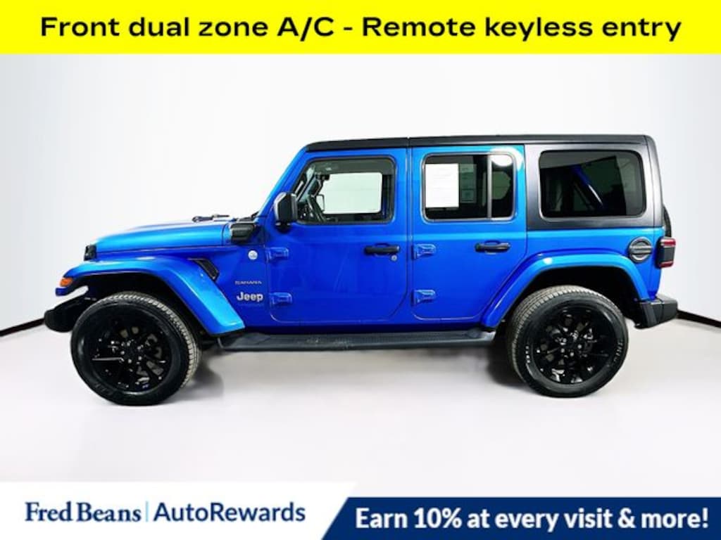 Discover the ultimate driving experience with the 2022 Jeep Wrangler Unlimited Sahara 4xe. This exceptional vehicle combines the iconic Jeep off-road capabilities with the efficiency of a plug-in hybrid powertrain, creating a truly remarkable and versatile SUV.