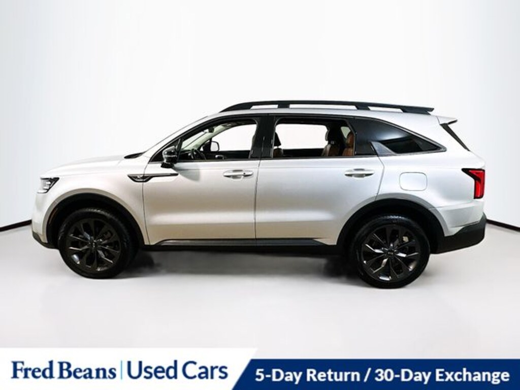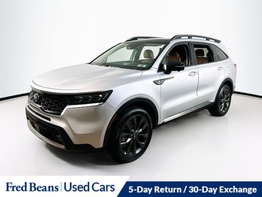 2021 Kia Sorento SX Prestige X-Line 2.5L I4 DGI Turbocharged DOHC 16V LEV3-ULEV70 281hp 8-Speed DCT AWD 4D Sport Utility Sparkling Silver AWD, 12 Speakers, 3.316 Axle Ratio, 3rd row seats: split-bench, 4-Wheel Disc Brakes, ABS brakes, Air Conditioning, Alloy wheels, AM/FM radio: SiriusXM, Apple CarPlay & Android Auto, Auto High-beam Headlights, Auto-dimming Rear-View mirror, Automatic temperature control, Brake assist, Bumpers: body-color, Carpeted Floor Mats, Delay-off headlights, Driver door bin, Driver vanity mirror, Dual front impact airbags, Dual front side impact airbags, Electronic Stability Control, Emergency communication system: UVO link, Four wheel independent suspension, Front anti-roll bar, Front Bucket Seats, Front Center Armrest, Front dual zone A/C, Front fog lights, Front reading lights, Fully automatic headlights, Heated & Ventilated Front Bucket Seats, Heated door mirrors, Heated front seats, Heated steering wheel, Illuminated entry, Knee airbag, Leather steering wheel, Low tire pressure warning, Navigation System, Occupant sensing airbag, Outside temperature display, Overhead airbag, Overhead console, Panic alarm, Passenger door bin, Passenger vanity mirror, Perforated Genuine Leather Seat Trim, Power door mirrors, Power driver seat, Power Liftgate, Power moonroof, Power passenger seat, Power steering, Power windows, Radio data system, Radio: AM/FM Premium Bose Audio System w/Nav, Rear air conditioning, Rear anti-roll bar, Rear reading lights, Rear window defroster, Rear window wiper, Remote keyless entry, Roof rack, Security system, Smart Key w/ Push Button and Remote Start, Speed control, Speed-sensing steering, Split folding rear seat, Spoiler, Steering wheel mounted audio controls, Tachometer, Telescoping steering wheel, Tilt steering wheel, Traction control, Trip computer, Turn signal indicator mirrors, Variably intermittent wipers, Ventilated front seats, Wheel Locks, Wheels: 20" Grey Finish Alloy, X-Line SX Prestige Rust Color Package, AWD.