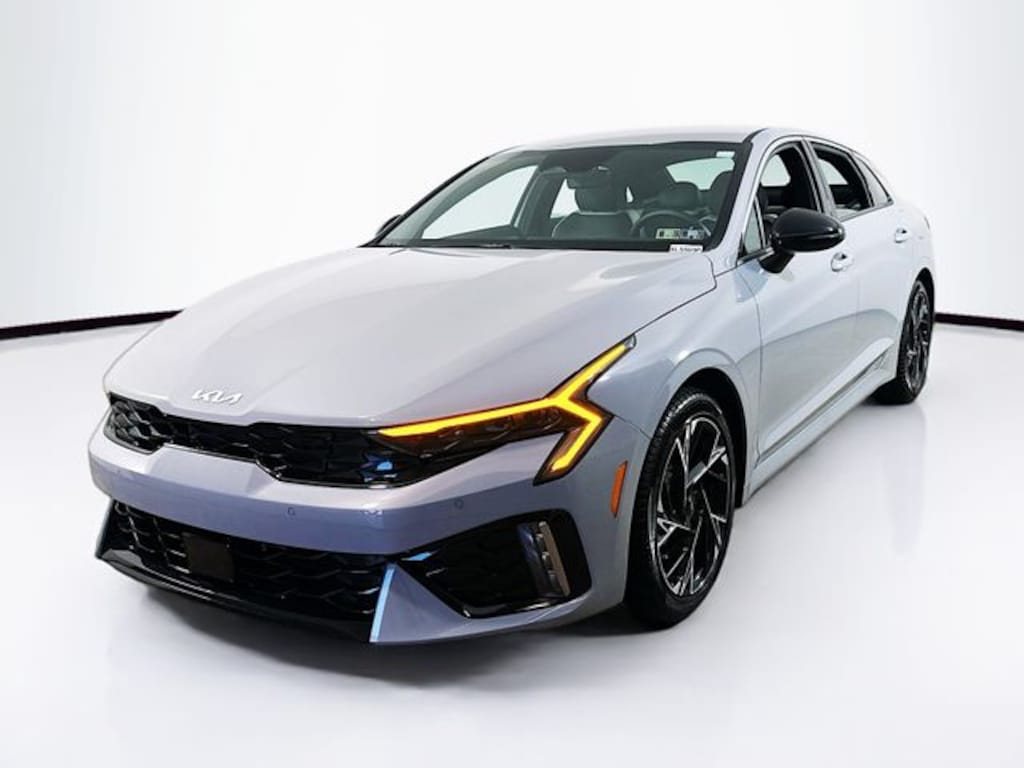 2025 Kia K5 GT-Line I4 8-Speed Automatic AWD 4D Sedan Wolf Gray 4-Wheel Disc Brakes, 6 Speakers, ABS brakes, Air Conditioning, Alloy wheels, AM/FM radio: SiriusXM, Apple CarPlay & Android Auto, Auto High-beam Headlights, Automatic temperature control, Brake assist, Bumpers: body-color, Carpeted Floor Mats, Delay-off headlights, Driver door bin, Driver vanity mirror, Dual front impact airbags, Dual front side impact airbags, Electronic Stability Control, Emergency communication system: Kia Connect (includes 1 year free trial), Four wheel independent suspension, Front anti-roll bar, Front Bucket Seats, Front Center Armrest, Front dual zone A/C, Front fog lights, Front reading lights, Fully automatic headlights, Heated door mirrors, Heated Front Bucket Seats, Heated front seats, Heated steering wheel, Illuminated entry, Knee airbag, Leather Shift Knob, Leather steering wheel, Low tire pressure warning, Navigation System, Occupant sensing airbag, Outside temperature display, Overhead airbag, Overhead console, Panic alarm, Passenger door bin, Passenger vanity mirror, Power door mirrors, Power driver seat, Power steering, Power windows, Radio data system, Radio: AM/FM Audio System, Rear anti-roll bar, Rear seat center armrest, Rear side impact airbag, Rear window defroster, Remote keyless entry, Security system, Speed control, Speed-sensing steering, Split folding rear seat, Sport steering wheel, Steering wheel mounted audio controls, Tachometer, Telescoping steering wheel, Tilt steering wheel, Traction control, Trip computer, Turn signal indicator mirrors, Variably intermittent wipers, Wheels: 18" x 7.5J Gloss Black Machined Finish Alloy.
