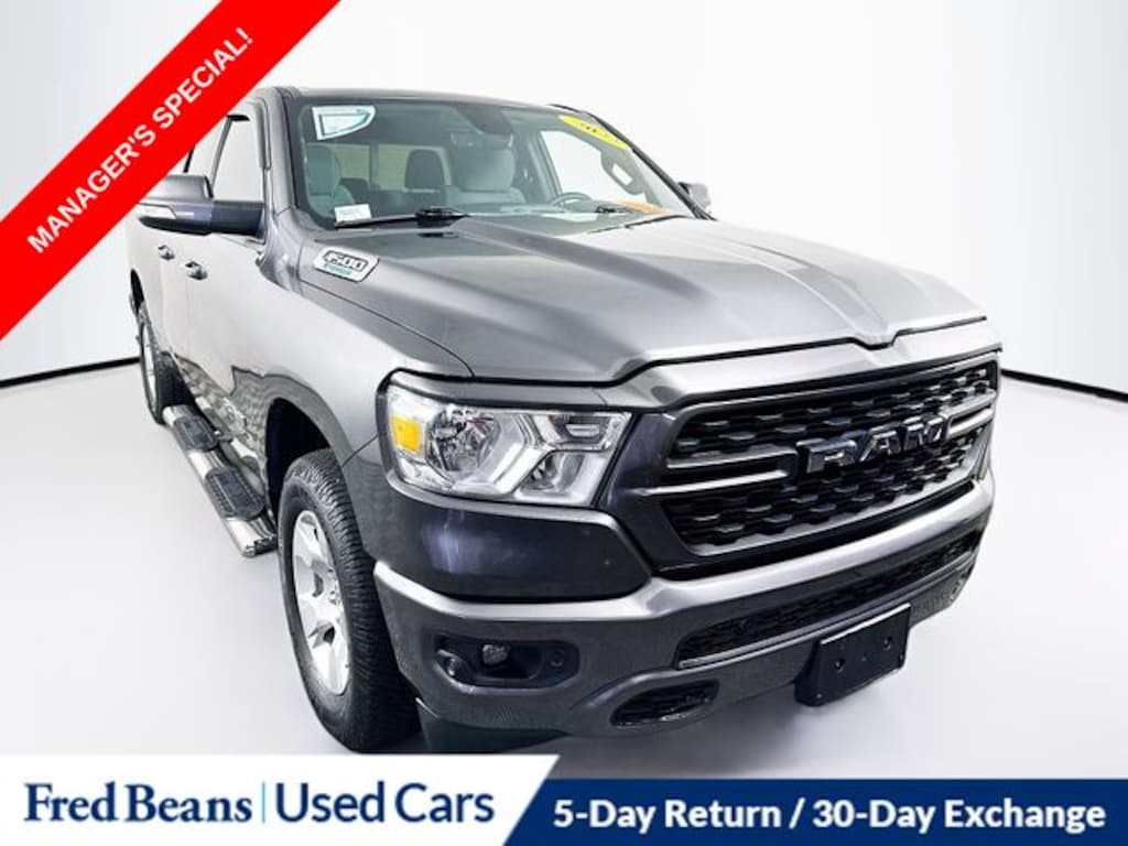 2022 Ram 1500 Big Horn/Lone Star 3.6L V6 24V VVT 8-Speed Automatic 4WD 4D Quad Cab Granite Crystal Metallic Clearcoat Free First Oil Change, 5 Day Return / 30 Day Exchange, Auto Reward Program, 1500 Big Horn/Lone Star, 4D Quad Cab, 3.6L V6 24V VVT, 8-Speed Automatic, 4WD, Granite Crystal Metallic Clearcoat, Black Cloth.