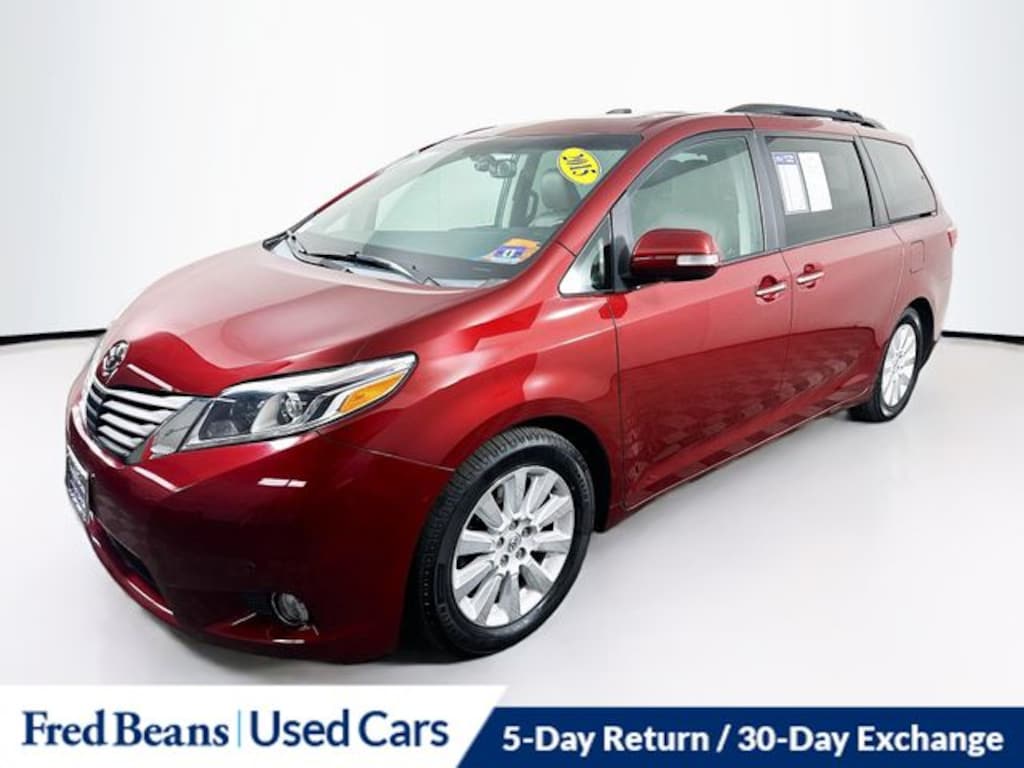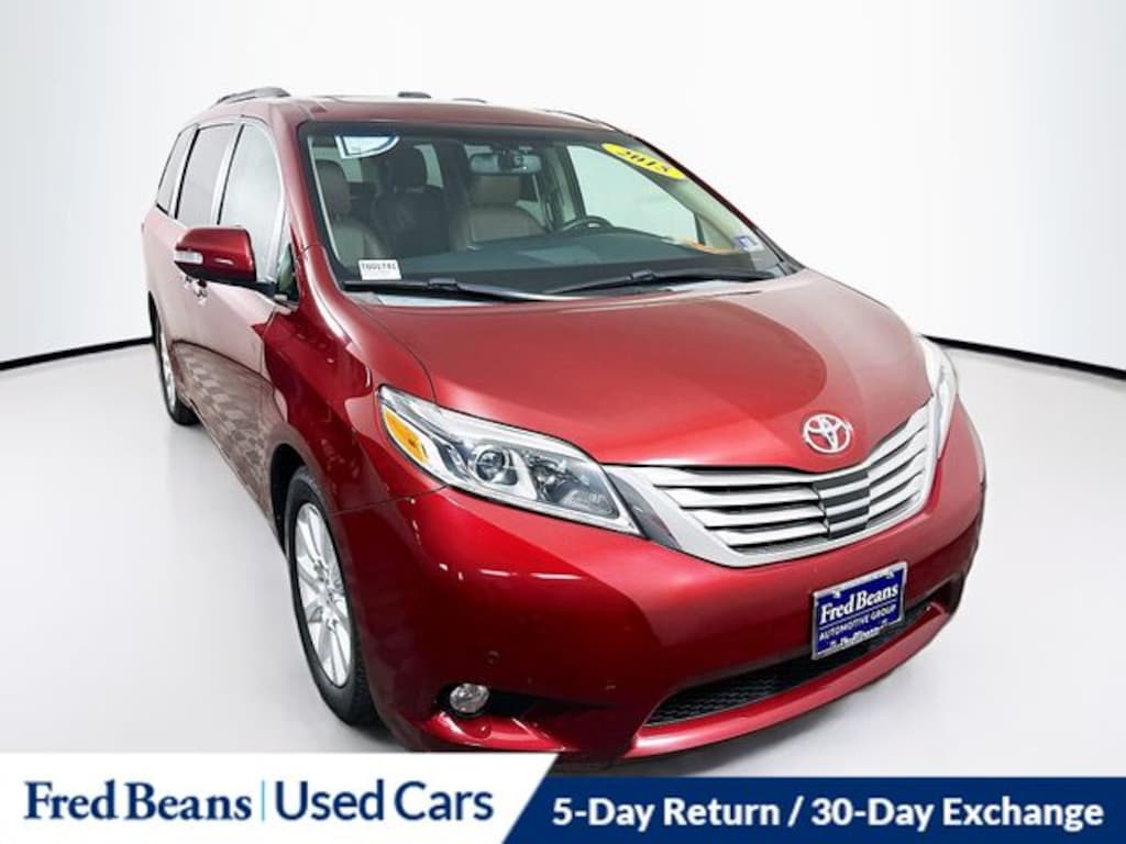 Recent Arrival! 2015 Toyota Sienna Limited Premium 7 Passenger 3.5L V6 SMPI DOHC 6-Speed Automatic Electronic with Overdrive FWD 4D Passenger Van Salsa Red Pearl Free First Oil Change, 5 Day Return / 30 Day Exchange, Auto Reward Program, Sienna Limited Premium 7 Passenger, 4D Passenger Van, 3.5L V6 SMPI DOHC, 6-Speed Automatic Electronic with Overdrive, FWD, Salsa Red Pearl, Bisque w/Leather Seat Material, 18" x 7" 10-Spoke Machine Finish Alloy Wheels, ABS brakes, Alloy wheels, Auto-dimming door mirrors, Bumpers: body-color, Compass, Electronic Stability Control, Front dual zone A/C, Heated door mirrors, Heated Front Bucket Seats, Heated front seats, Illuminated entry, Leather Seat Material, Low tire pressure warning, Navigation System, Power 2nd-Row Moonroof, Power door mirrors, Power Liftgate, Power moonroof, Remote keyless entry, Roof rack: rails only, Spoiler, Traction control, Turn signal indicator mirrors.
