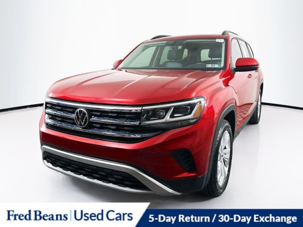 Recent Arrival! 2021 Volkswagen Atlas 2.0T SE w/Technology 2.0L TSI 8-Speed Automatic with Tiptronic FWD 4D Sport Utility Red Metallic Local Trade, Great Service History, AS-IS Vehicle, Auto Reward Program, Panoramic Sunroof, Panoramic Sunroof Package.