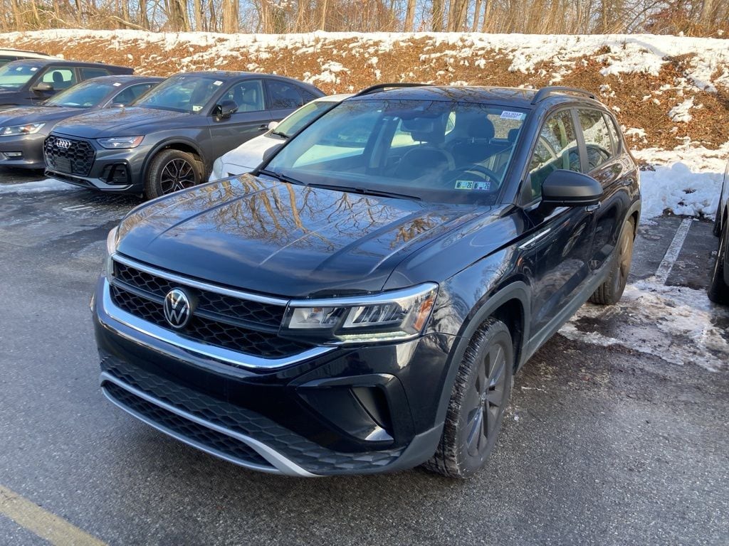2022 Volkswagen Taos 1.5T S 1.5L I4 Turbocharged DOHC 16V LEV3-SULEV30 158hp 7-Speed DSG Automatic with Tiptronic AWD 4D Sport Utility Deep Black Pearl Great Service History, Remainder of Factory Warranty, Factory Certified Vehicle, Auto Reward Program, Active Blind Spot Monitor, Adaptive Cruise Control (ACC) w/Stop & Go, Automatic Rain-Sensing Front Wipers, Convenience Features, Driver Assistance Package, Emergency Assist, Front Assist, Hands-On Detection Sensor Steering Wheel, Heated Leatherette-Wrapped Steering Wheel, IQ.DRIVE S Package, Lane Assist (Lane Keeping System), Leather-Trimmed Shifter, Light Assist (High Beam Control), Rear Traffic Alert, S Convenience Package, Travel Assist (Semi-Automated Driving Assistance).