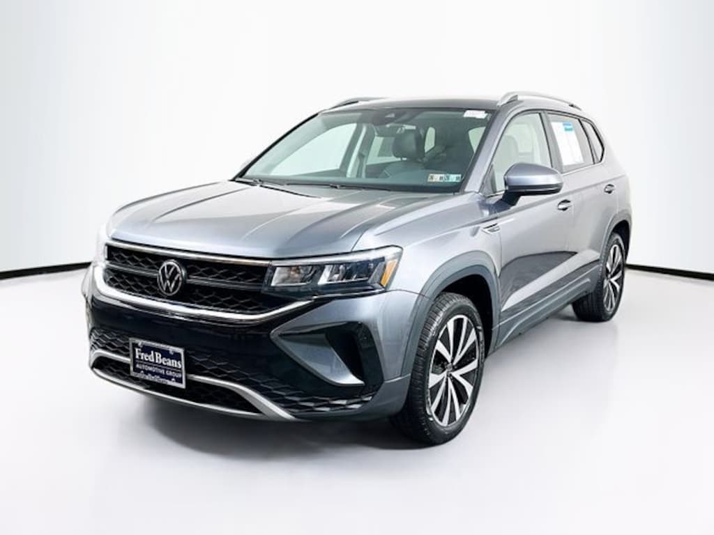 2023 Volkswagen Taos 1.5T SE 1.5L I4 Turbocharged DOHC 16V LEV3-SULEV30 158hp 8-Speed Automatic with Tiptronic FWD 4D Sport Utility Platinum Gray Metallic Triton Certified Vehicle, 7 Year / 100k Powertrain Warranty, 12 Month /12,000 Mile Comprehensive Warranty.